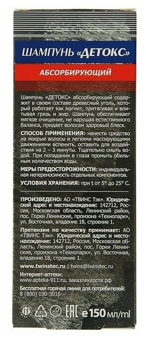 На сегодняшний день товар «911 Шампунь детокс абсорбирующий Древесный уголь 150мл ТВИНС Тэк» можно купить с кешбеком в 1 магазине: Яндекс.Маркет