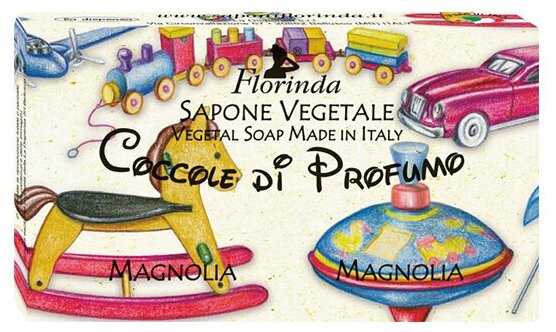 Мыло Florinda - гордость итальянского мыловарения, дошедшего до нас в классических рецептах и традиционных ароматических купажах. Мыло полностью изготовлено из безопасных и натуральных ингредиентов растительного происхождения, что обеспечивает его мягкость и нежную заботу о коже при использовании. Благодаря высокому содержанию в составе парфюмерной композиции, мыло обладает магическим, чарующим ароматом вечерней аллеи южного города, утопающей в пышных цветах магнолий. Florinda это не просто великолепный аромат и забота о вашем здоровье - это "запах эмоций".