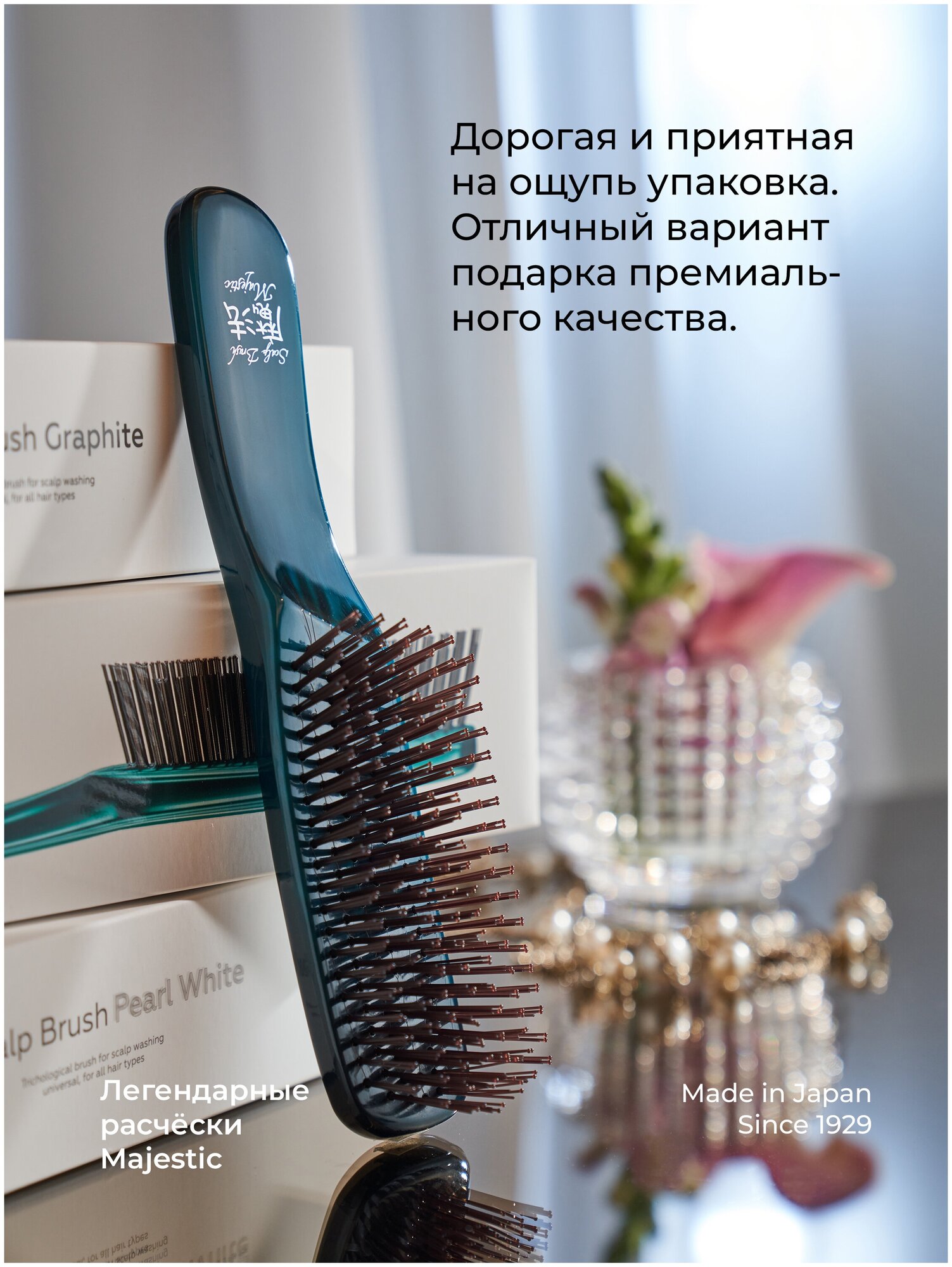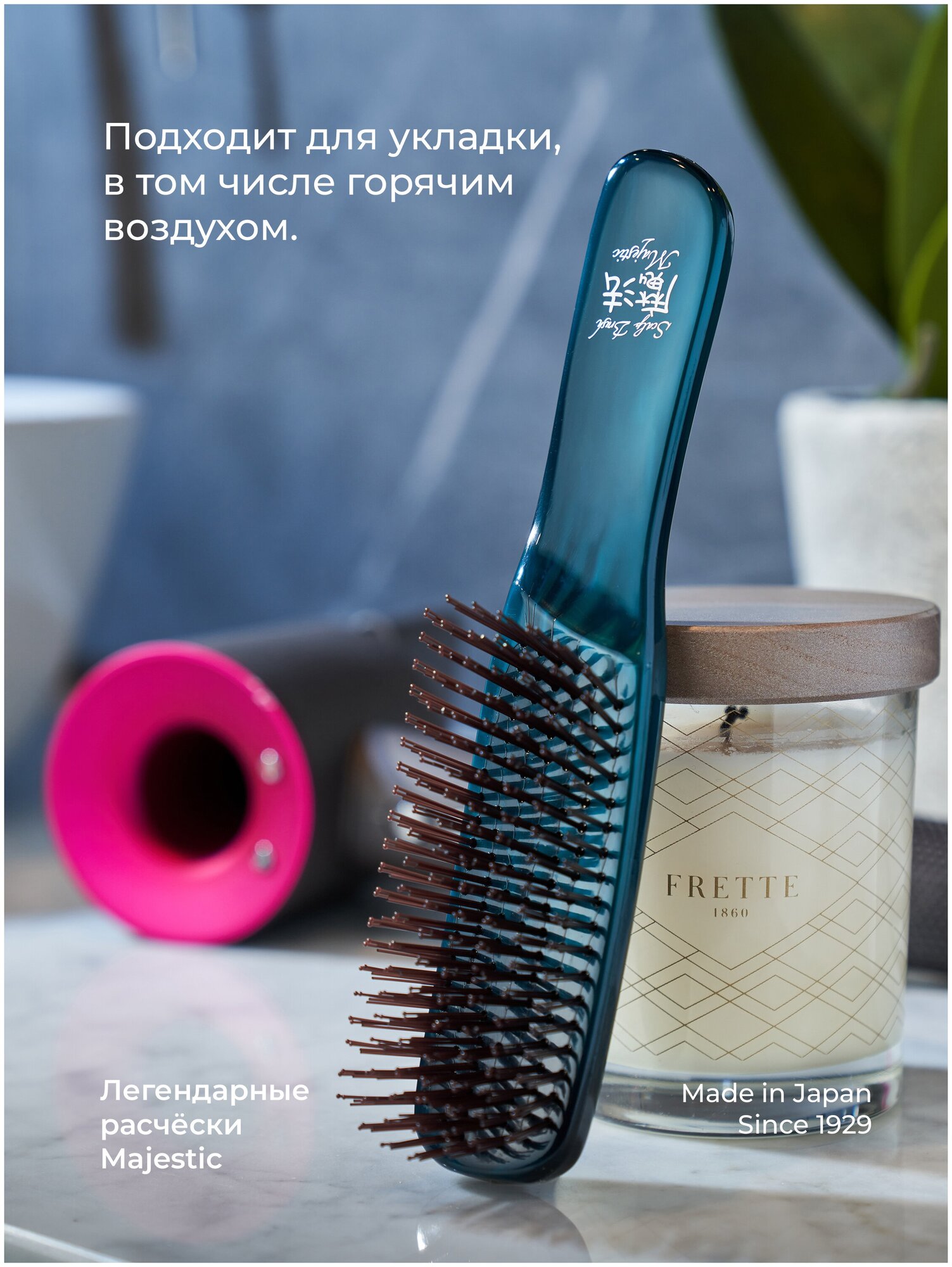 Расческа Majestic Green для густых жестких волос. 568 зубчиков с литыми наконечниками тщательно очищают более сорока тысяч пор от скопившихся загрязнений, а эффект легкого пилинга обеспечивает устранение старых клеток - кожа начинает дышать. Массаж усиливает приток крови к корням волос - это благоприятно воздействует на волосяные фолликулы, в том числе спящие - к ним поступает больше микро- и макроэлементов. Волосы начинают расти быстрее, а при регулярном применении становятся гуще, сильнее, наполняются естественным блеском.