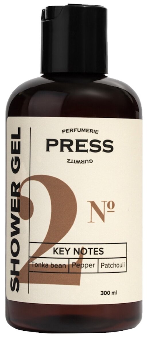 Пресс Гурвиц Парфюмери Гель для душа №2 Бобы Тонка-Черный перец-Пачули 300мл Айкон Пакеджинг