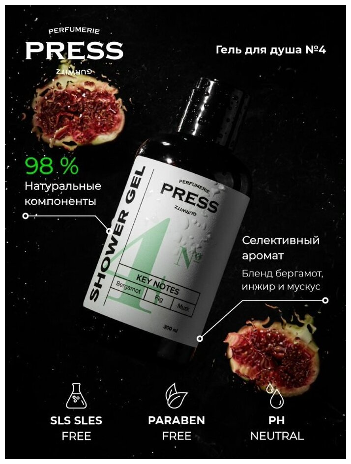 Пресс Гурвиц Парфюмери Гель для душа №4 Бергамот-Инжир-Мускус 300мл Айкон Пакеджинг