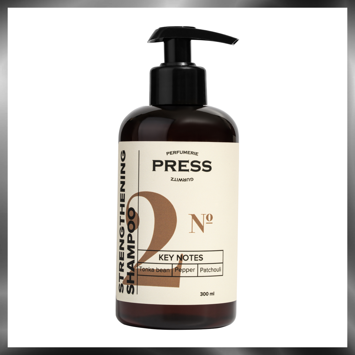 Пресс Гурвиц Парфюмери Шампунь укрепляющий для волос №2 Бобы Тонка-Черный перец-Пачули 300мл Айкон Пакеджинг