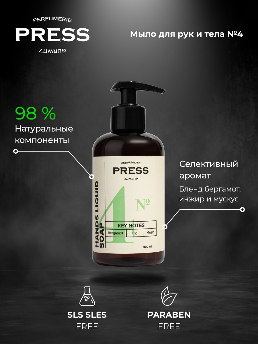 Пресс Гурвиц Парфюмери Мыло жидкое для рук №4 Бергамот-Инжир-Мускус 300мл Айкон Пакеджинг