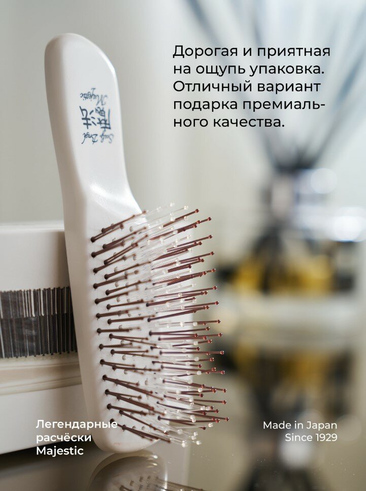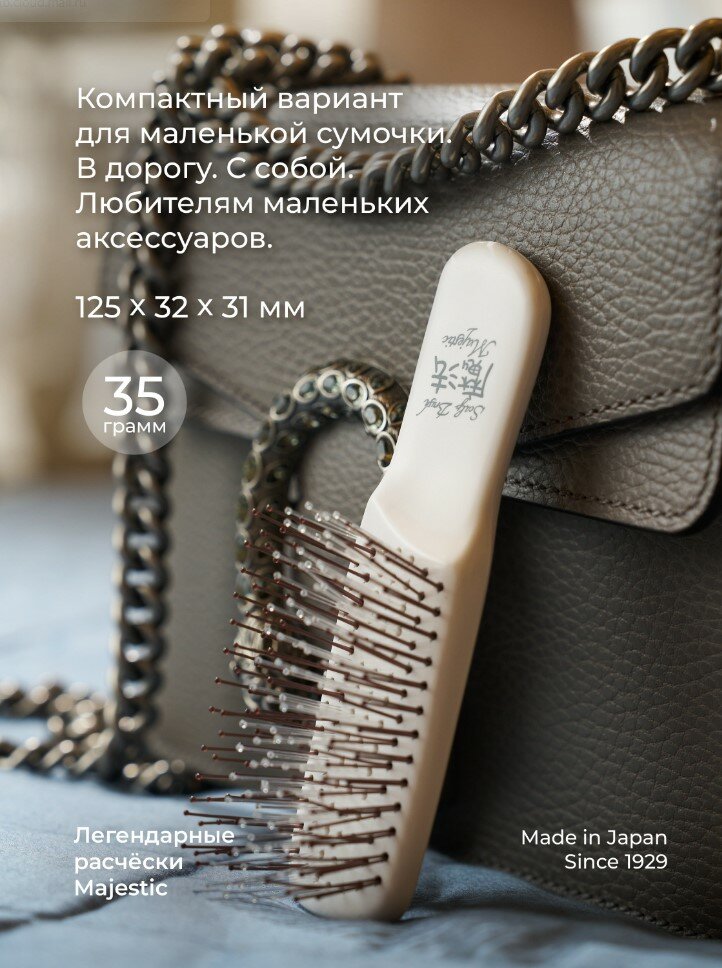 Трихологическа расческа Majestic mini Pearl White для ослабленных волос и чувствительной кожи головы.Расческа имеет 198 зубчиков с силиконовую вставку. Зубчики выполнены из гибкого износостойкого нейлона. Отсутствие микротрещин и зазубрин обеспечивает бережное расчесывание - волосы не травмируются¶и не секутся. Верхние зубчики устраняют загрязнения и старые клетки,¶а нижние мягко массажируют голову.