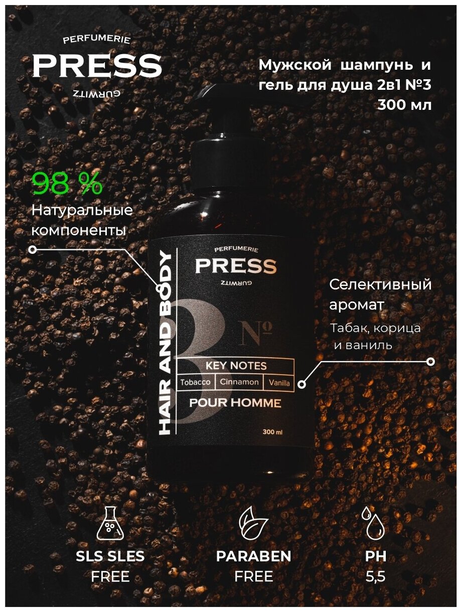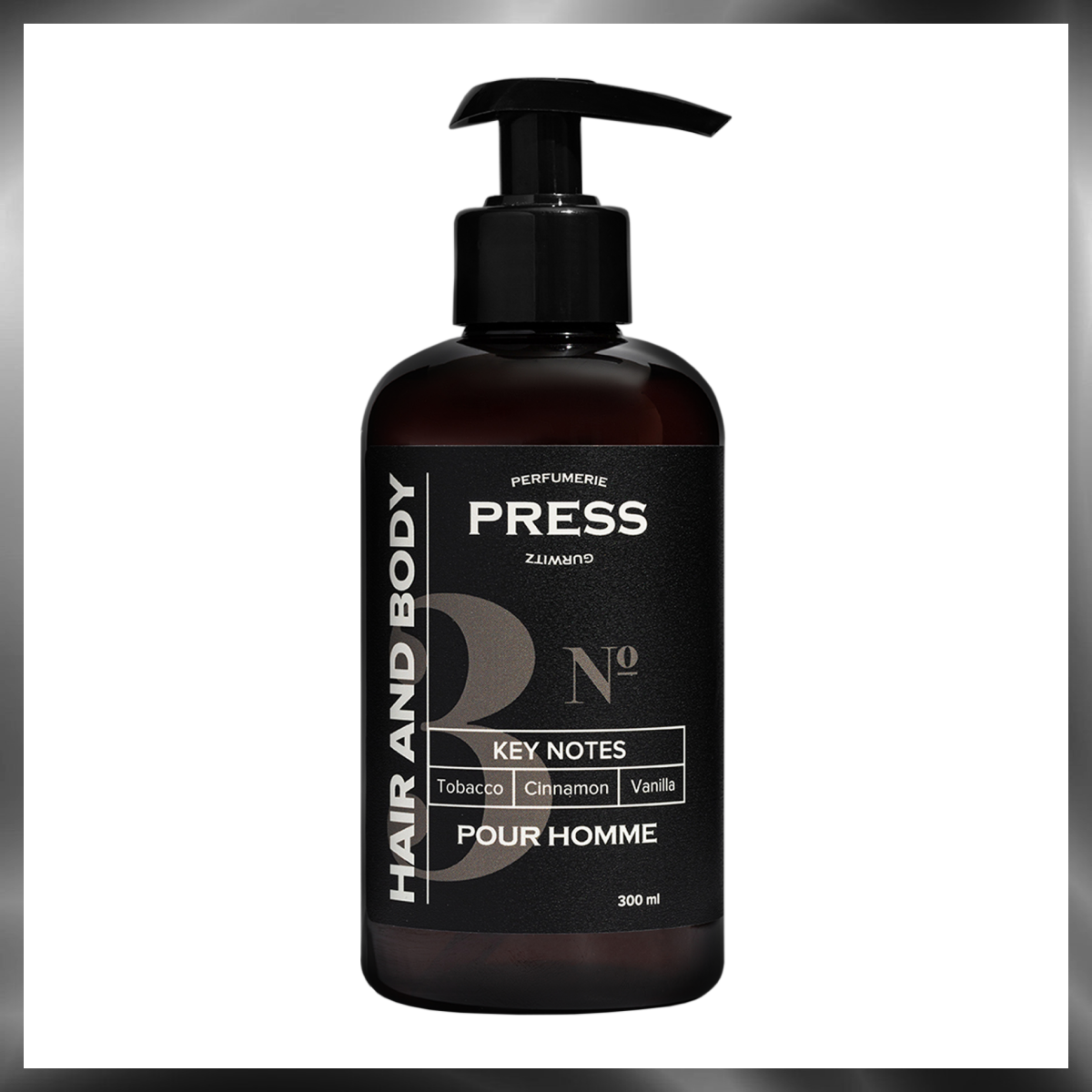 Пресс Гурвиц Парфюмери Пур Ом Шампунь-гель для душа 2в1 №3 Табак-Корица-Ваниль 300мл Айкон Пакеджинг
