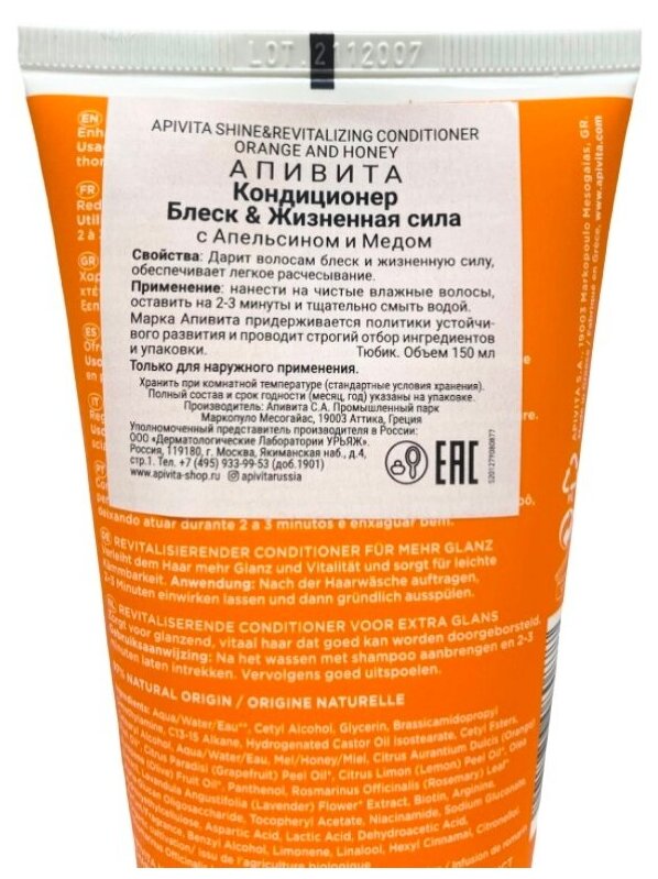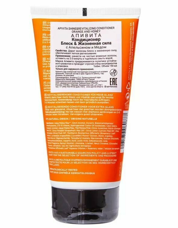 Апивита Кондиционер блеск и жизненная сила Апельсин-Мед тюб.150мл