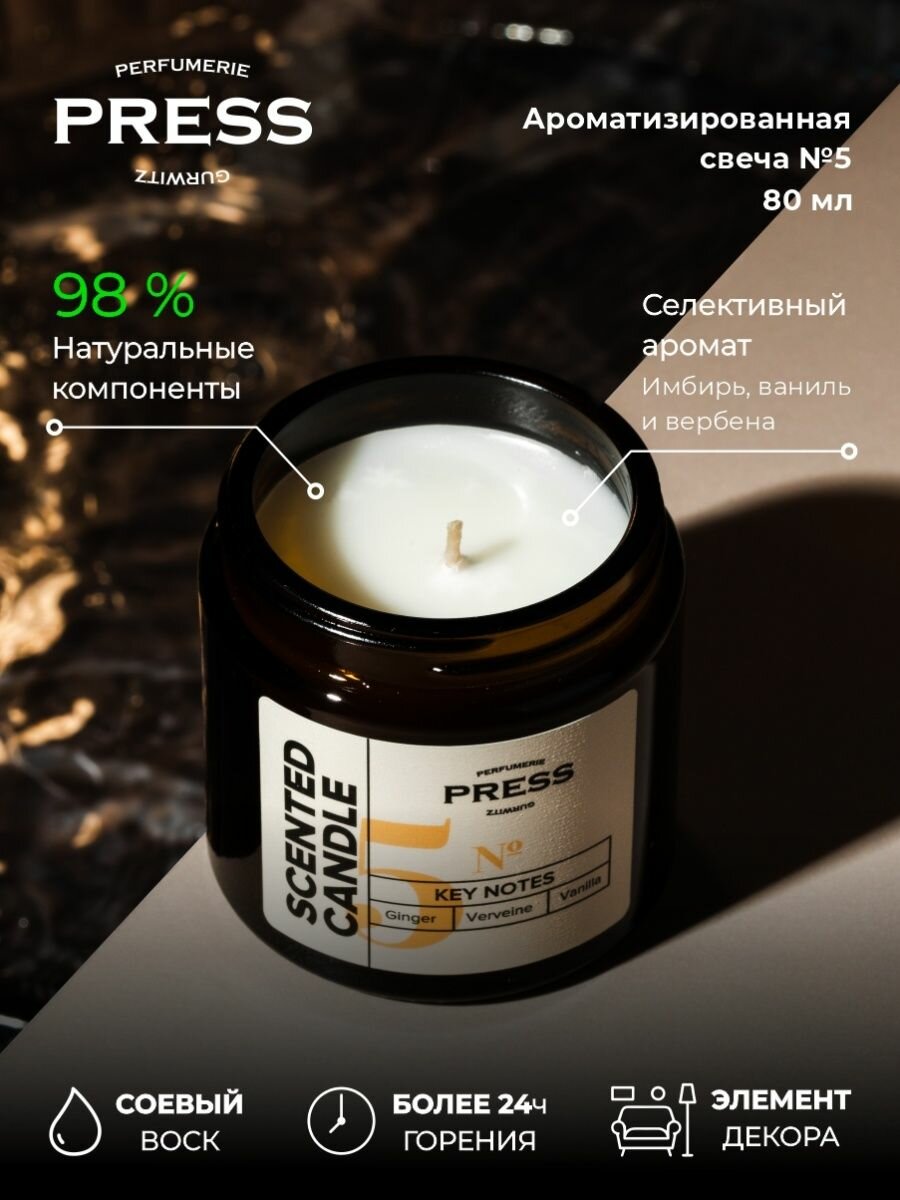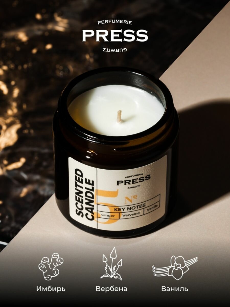 Пресс Гурвиц Парфюмери Ароматизированная свеча №5 с нотами Имбиря-Ванили-Вербены №1 Айкон Пакеджинг