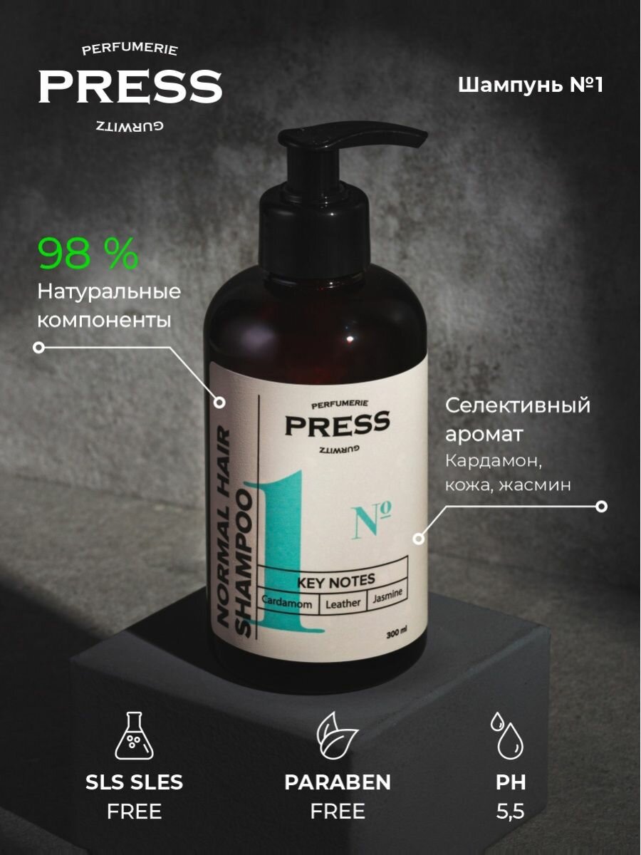 Пресс Гурвиц Парфюмери Шампунь для нормальных волос №1 Кардамон-Кожа-Жасмин 300мл Айкон Пакеджинг