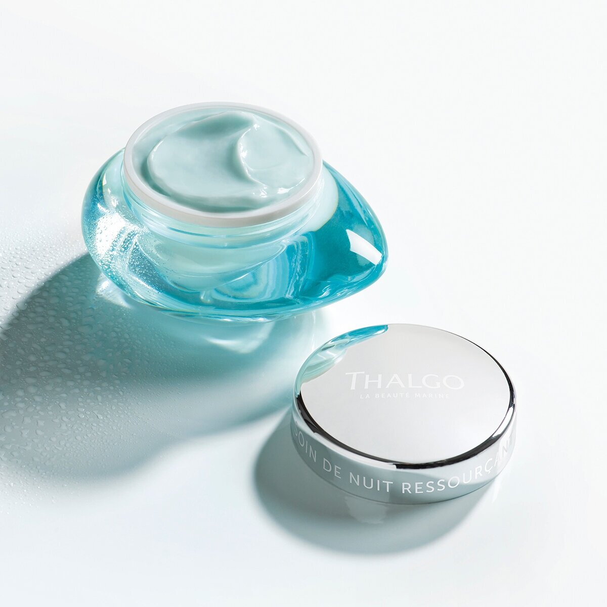Ночной крем с комфортной и нежной обволакивающей текстурой "второй кожи" словно погружает в восстанавливающую ванну с ароматом морской свежести. Богатая марганцем Вода морских источников Sève Bleue в сочетании с морским кальцием из красной водоросли Литотамнии и микронизированные морские водоросли (фильтрат) позволяют восстановить запасы влаги в коже во время сна. Крем создает "минеральный барьер" для предотвращения трансэпидермальной потери воды ночью, оживляет и укрепляет кожу. Уже после первого применения при пробуждении кожа выглядит наполненной и полностью увлажненной. С каждым использованием выраженность признаков усталости уменьшается, а кожа становится напитанной и красивой.