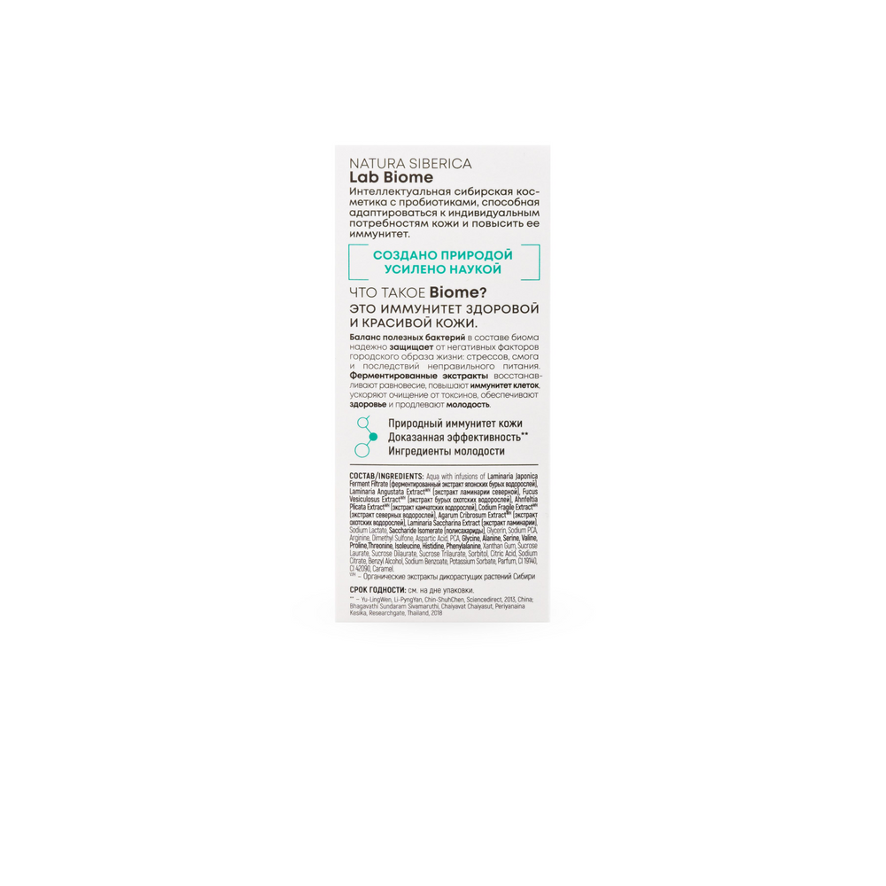 Сила морских водорослей для экстремального и длительного увлажнения. Мгновенно наполняет влагой и восстанавливает энергетический потенциал, стирая следы обезвоживания и стресса. Воздействует на глубинные слои кожи и на поверхности для ее невероятной упругости. Biome base: ферментированный экстракт японских бурых водорослей укрепляют баланс биома кожи и ее сопротивляемость последствиям городского образа жизни, оказывает мощный восстанавливающий эффект и активизирует обменные процессы в клетках. Морская «гиалуроновая кислота» – комплекс, состоит из полисахаридов, аминокислот и экстрактов морских водорослей, которые работают по аналогии с гиалуроновой кислотой, интенсивно увлажняют и надолго удерживают влагу, разглаживают и придают здоровое сияние. Гликопротеины водорослей – предотвращают возрастные изменения, стимулируют выработку коллагена и процессы обновления клеток, возвращают тонус и упругость.