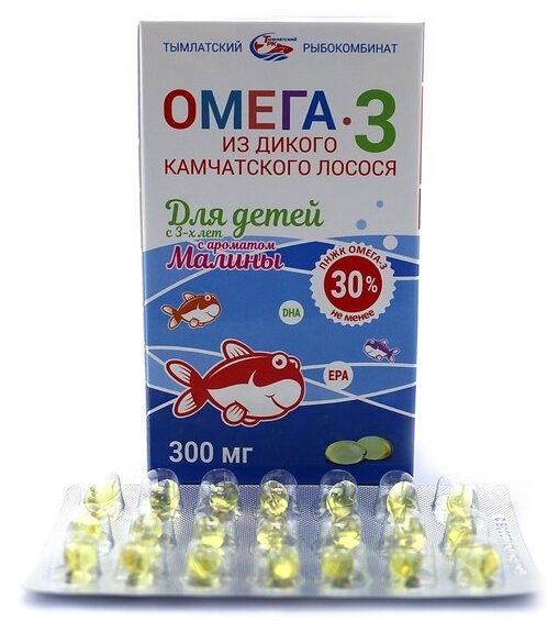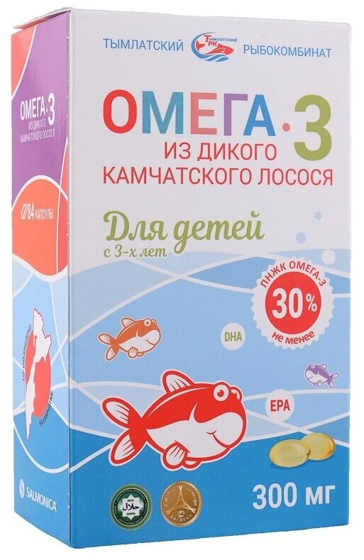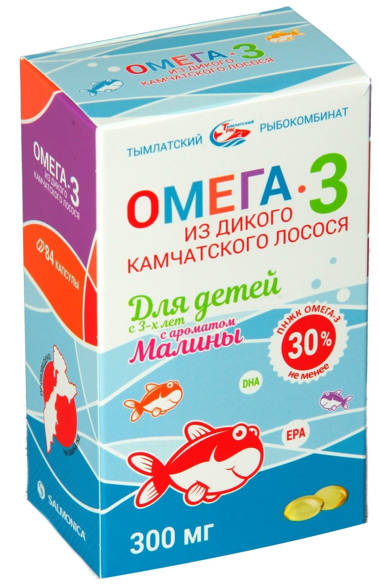 Сальмоника Омега-3 из дикого камчатского лосося для детей с трех лет капс.300мг №84 Малина Тымлатский Рыбокомбинат