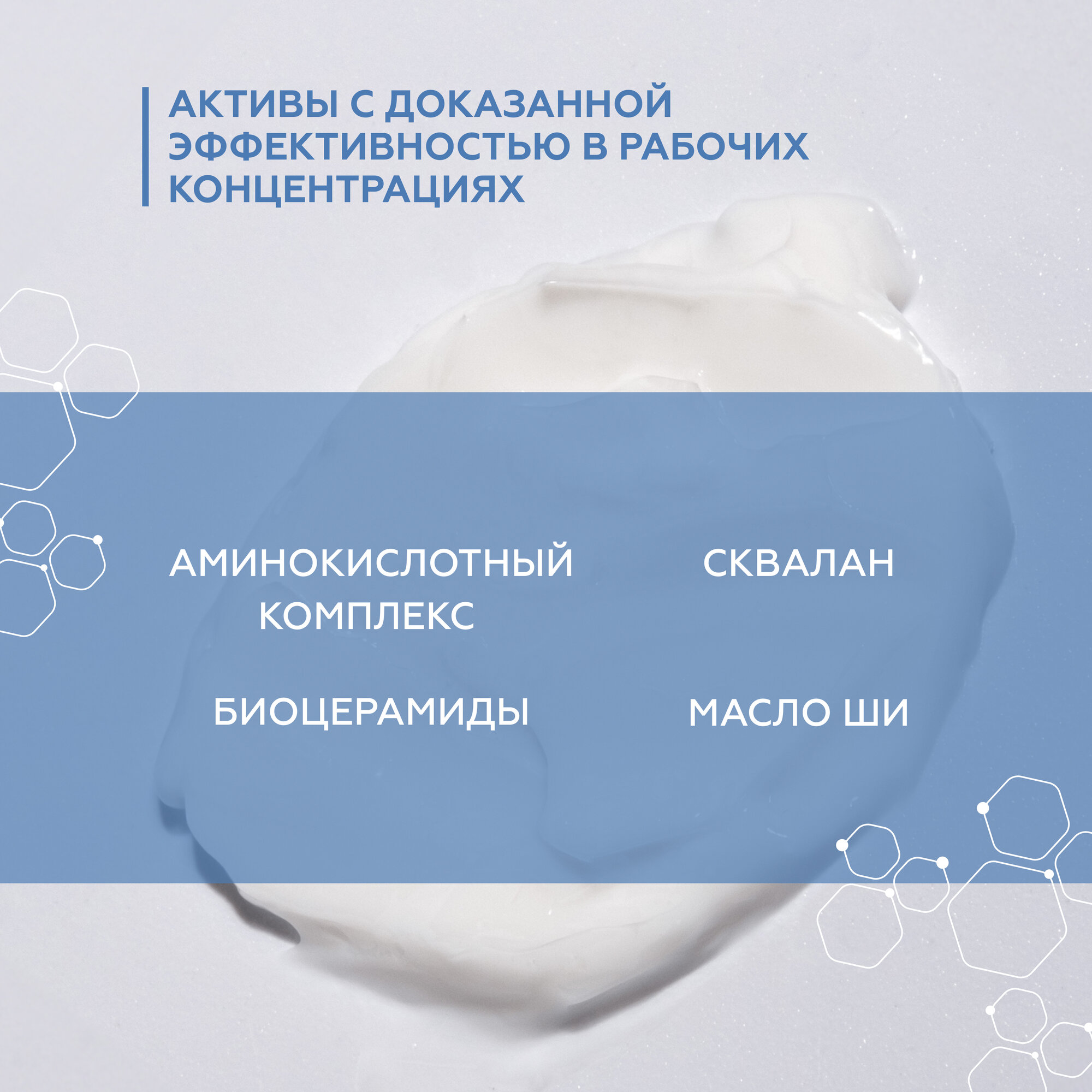 Нежный ламеллярный крем, действие которого направлено на восстановление целостности гидролипидной мантии кожи, повышение её защитных функций, интенсивное увлажнение и питание, а также выравнивание микрорельефа кожи. Благодаря наличию в составе основных элементов эпидермального барьера- биоцерамидного комплекса, сквалана, аминокислот натурального увлажняющего фактора (серин, глицин, глутаминовая кислота, аланин, лизин, аргинин, треонин, пролин), крем реструктурирует роговой слой эпидермиса, создает оптимальные условия для микробиома, оздоравливает кожу. Крем питает и смягчает, предотвращает обезвоживание кожи и образование морщин, повышает эластичность, упругость кожи, делает ее шелковистой и ухоженной. Активные компоненты: Аминокислотный комплекс Prodew 400 содержит компоненты NMF -натурального увлажняющего фактора: гидрокси- и аминокислоты глицин, аланин, пролин, аргинин, лизин, серин, треонин, глутаминовую кислоту, пирролидонкарбоксилат натрия, сорбитол и триметилглицин (бетаин) и другие составляющие. Комплекс обеспечивает мощную защиту сухой и чувствительной кожи от повреждающих факторов, вызывающих длительное обезвоживание, таких как жара и резкие перепады температур, надежно удерживает влагу в эпидермисе в течение 12 часов. Кожа становится более эластичной, упругой, здоровой. Эффективность влагоудерживающего комплекса Prodew 400 доказана специалистами компании Ajinomoto Co. (Япония). Биоцерамидный комплекс SymRepair 100 — это высокоэффективный комплекс для восстановления кожного барьера, содержащий ключевые компоненты липидных слоев гидролипидной мантии кожи - запатентованный церамид в сочетании с бисабололом и фитостеролами. Комплекс эффективно и быстро уменьшает раздражение и покраснение кожи. Предотвращает потерю влаги. Масло Ши - некомедогенное масло. Увлажняет, питает и омолаживает кожу. Нейтрализует покраснение и шелушение. Повышает устойчивость кожи к ультрафиолету. Витамин Е – антиоксидант, повышает защитные свойства кожи и стабильность формулы крема. Биофилик H- натуральный ламеллярный эмульгатор. Восстанавливает защитный барьер поврежденной кожи, улучшает биодоступность, проникновение в кожу и эффективность активных компонентов формулы крема. Уменьшает потерю влаги эпидермисом. Способствует процессу регенерации, уменьшает воспаления и раздражения.