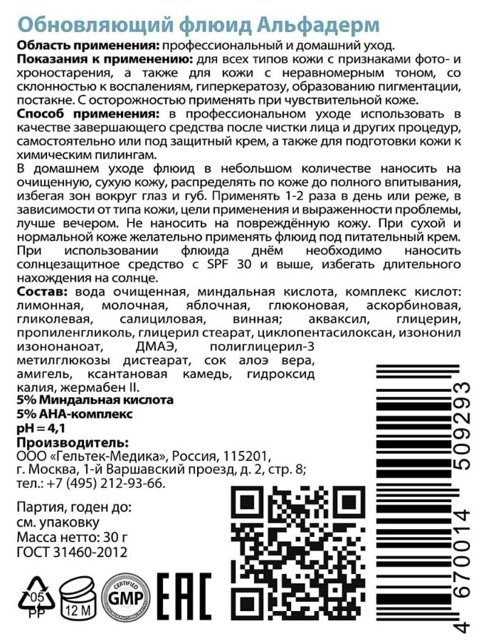 Гельтек Альфадерм Флюид обновляющий фл.30мл Гельтек-Медика