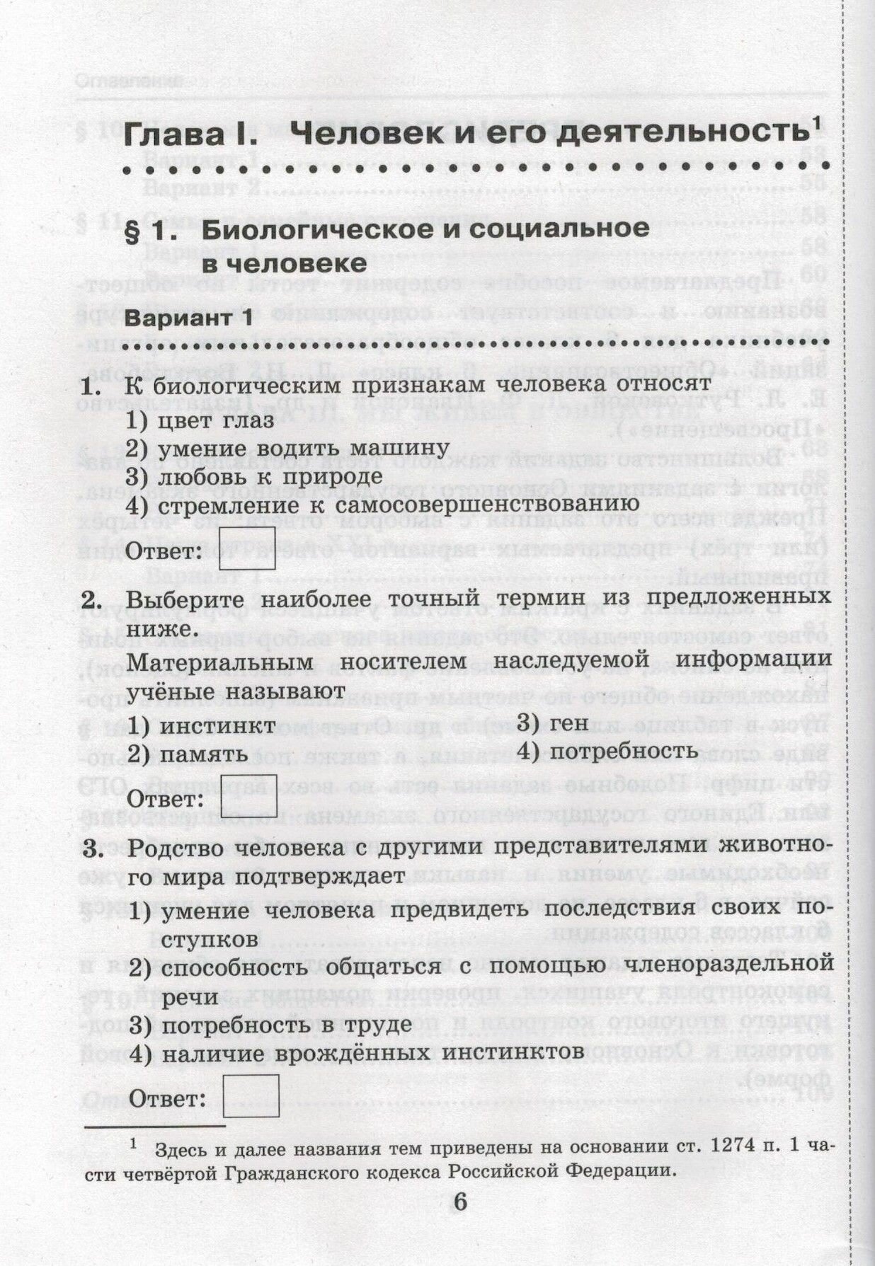 Данное пособие полностью соответствует федеральному государственному образовательному стандарту. Пособие включает тесты по обществознанию и соответствует содержанию и структуре учебника Л. Н. Боголюбова, Е. Л. Рутковской, Л. Ф. Ивановой и др. "Обществознание" (издательство "Просвещение") для 6 класса общеобразовательных организаций. Тесты, составленные к каждому параграфу учебника (в двух вариантах), можно использовать для обучения и самоконтроля учащихся, проверки домашних заданий, текущего и итогового контроля, а также постепенной подготовки к Основному государственному экзамену. Ко всем тестам даны ответы. Пособие предназначено учащимся 6 классов, учителям и методистам.