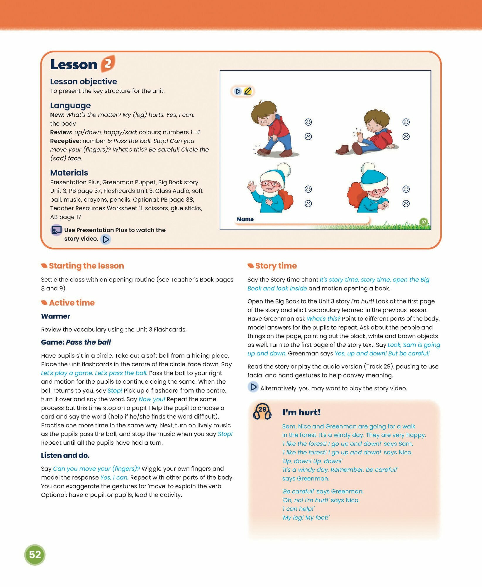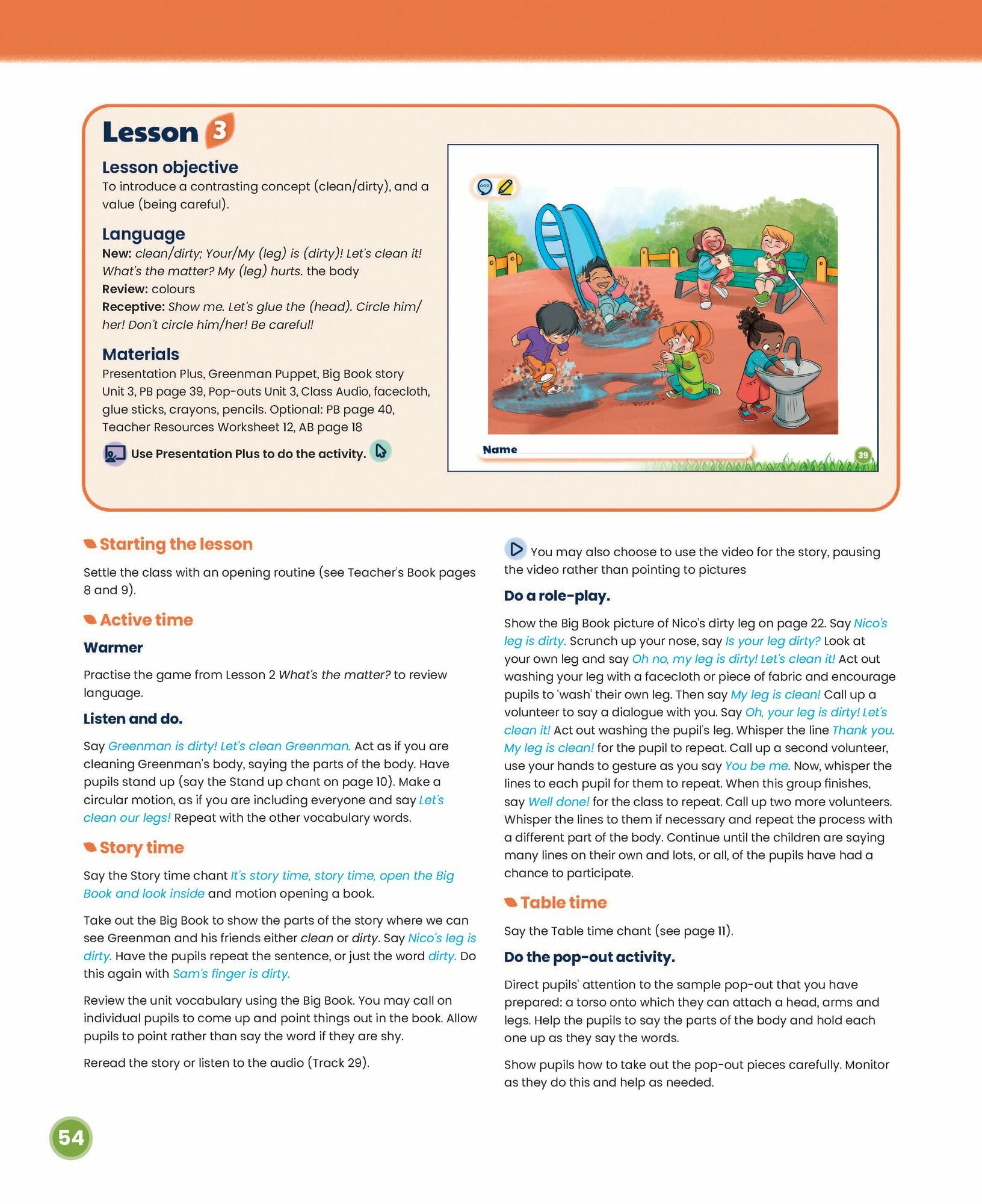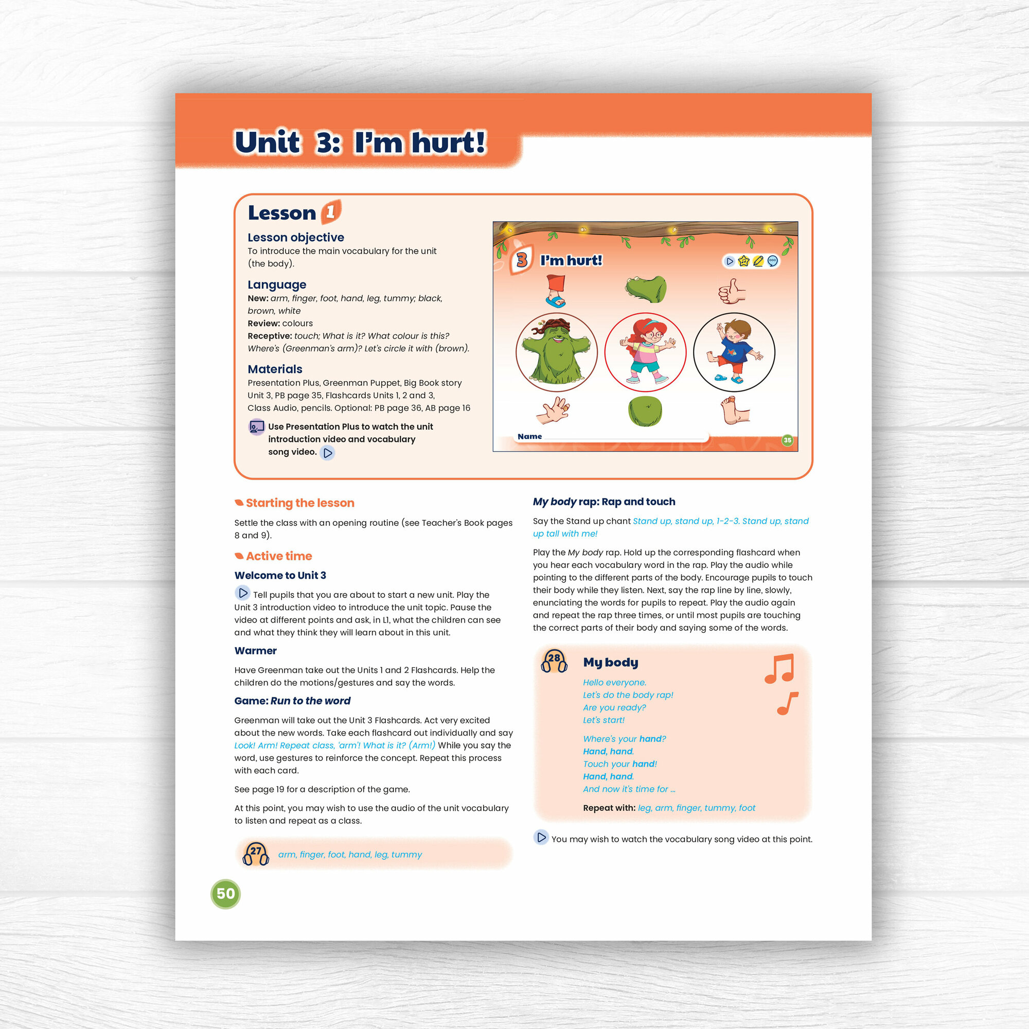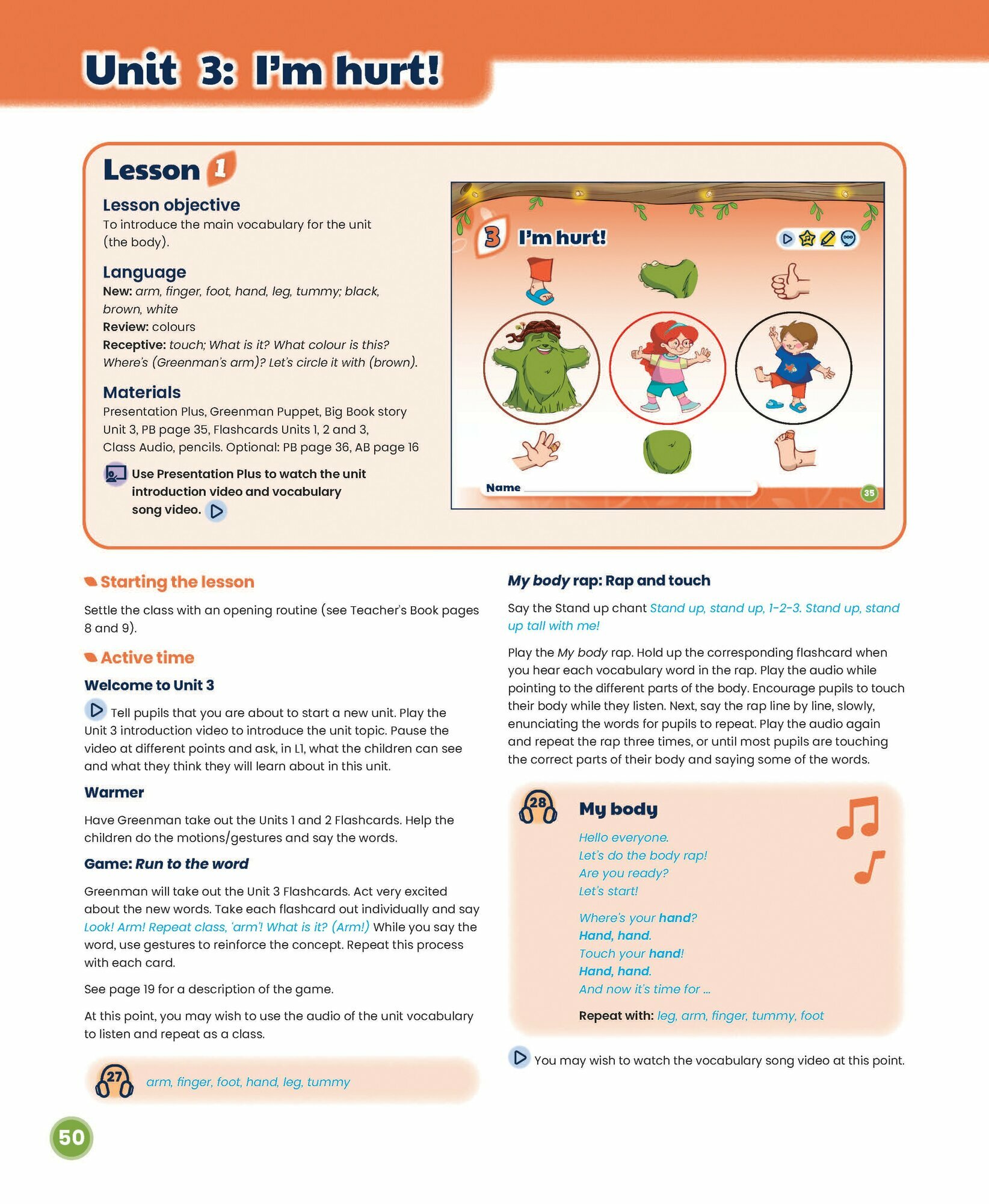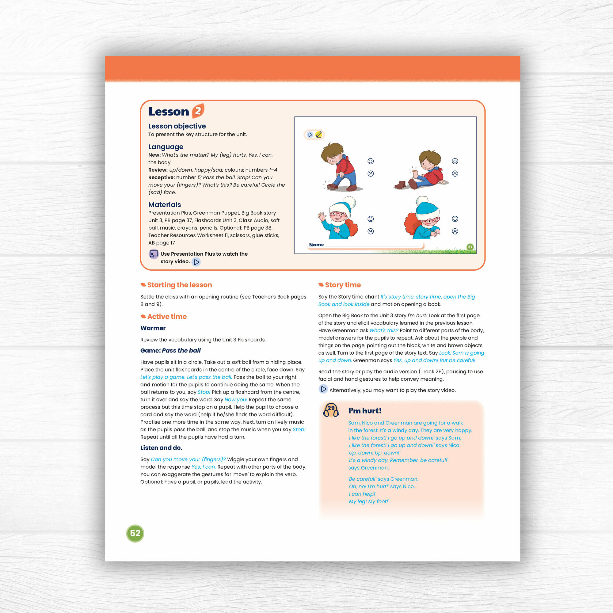 Книга для учителя содержит всю информацию, необходимую учителям для планирования и проведения уроков. К каждому уроку прилагается полное руководство, включая дополнительные задания и игры для продления занятий. Спиральный переплет делает книгу для учителя удобной в использовании при планировании и обучении.