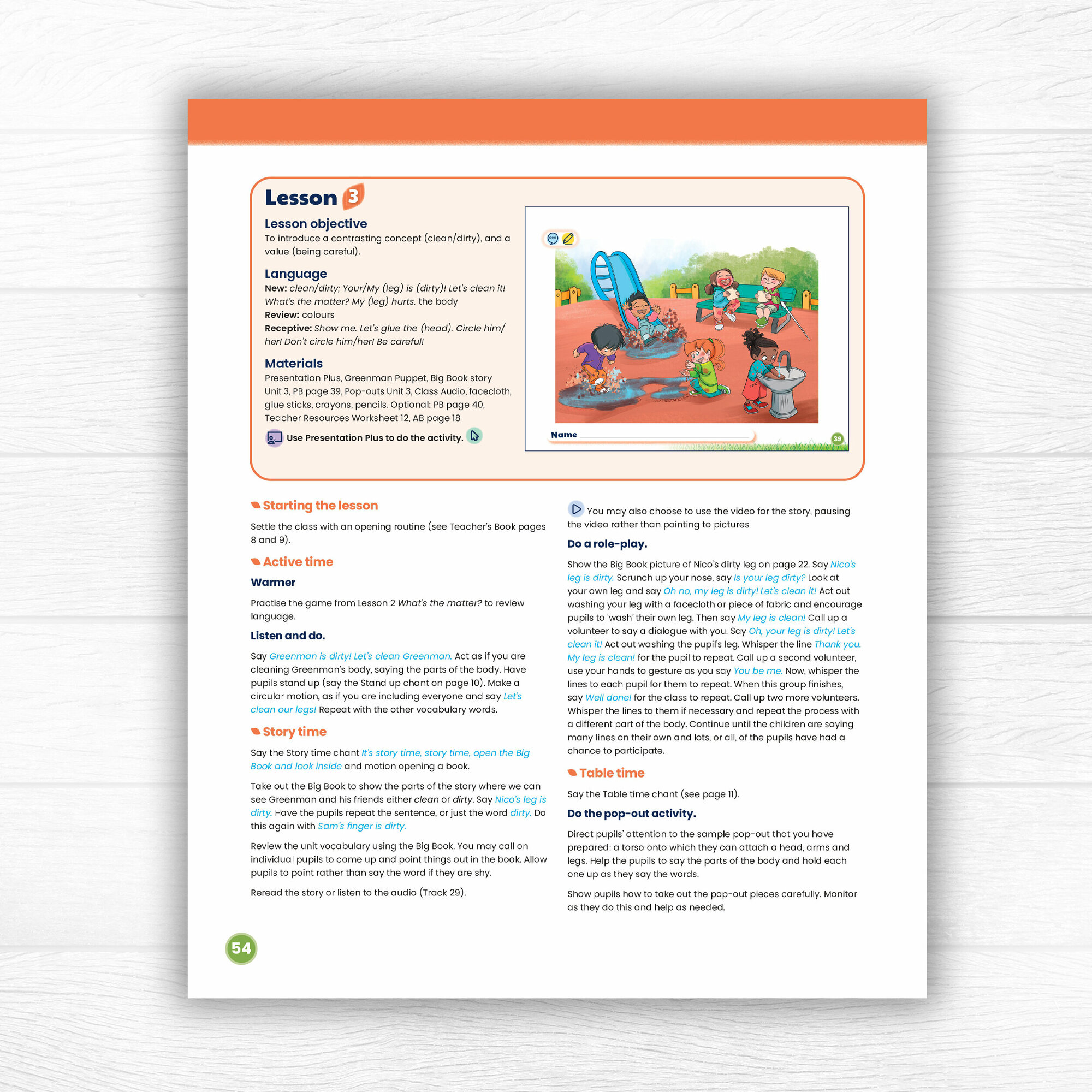 The Teacher's Book includes all the information to help teachers to plan and execute lessons. There is a full guide for each lesson including optional activities and games for extension. The spiral binding makes the Teacher's Book easy to use while planning and teaching. The Digital Pack contains access to the Front of Class software and digital resources teachers need to make lessons magical.