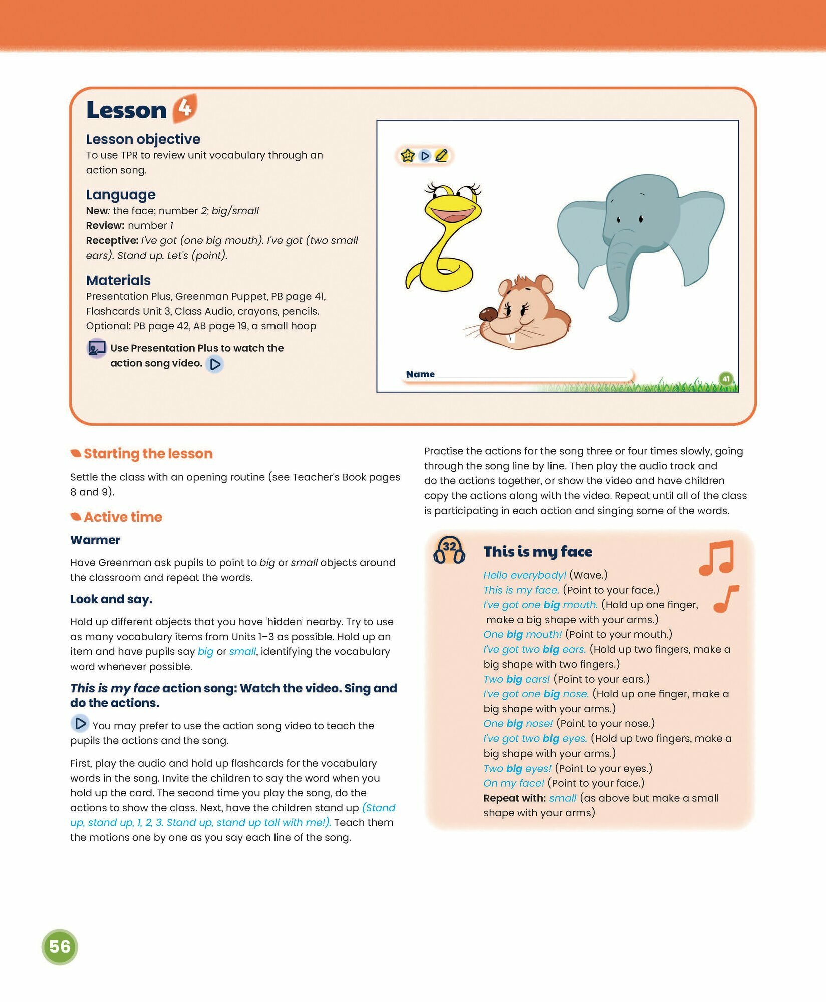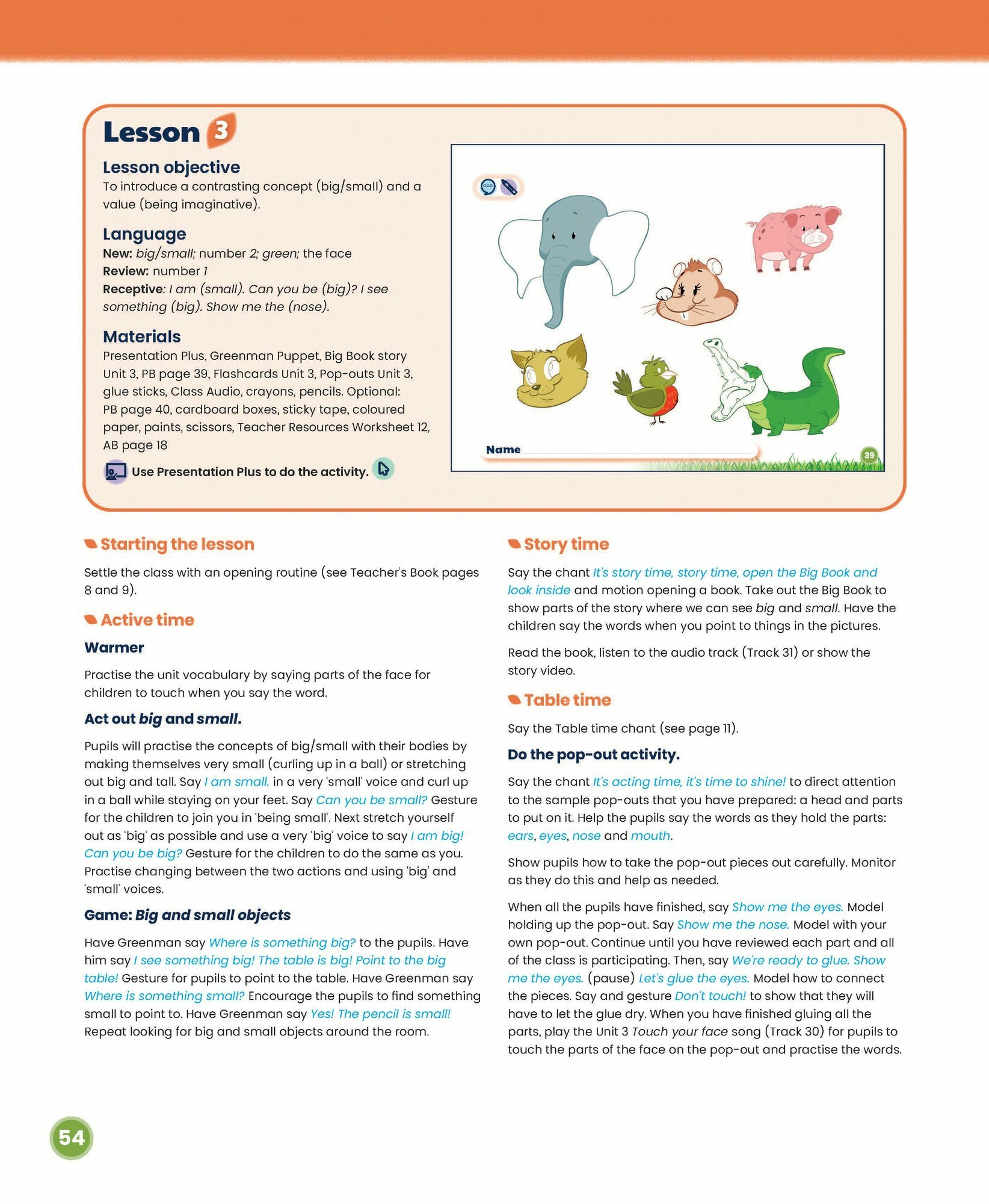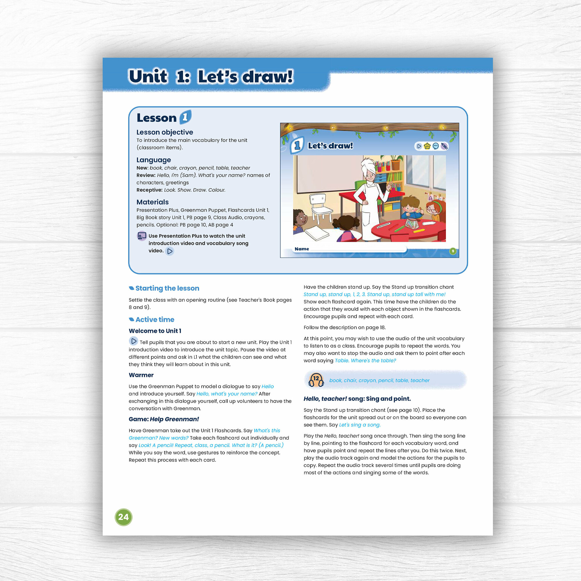 Книга для учителя содержит всю информацию, необходимую учителям для планирования и проведения уроков. К каждому уроку прилагается полное руководство, включая дополнительные задания и игры для продления занятий. Спиральный переплет делает книгу для учителя удобной в использовании при планировании и обучении.