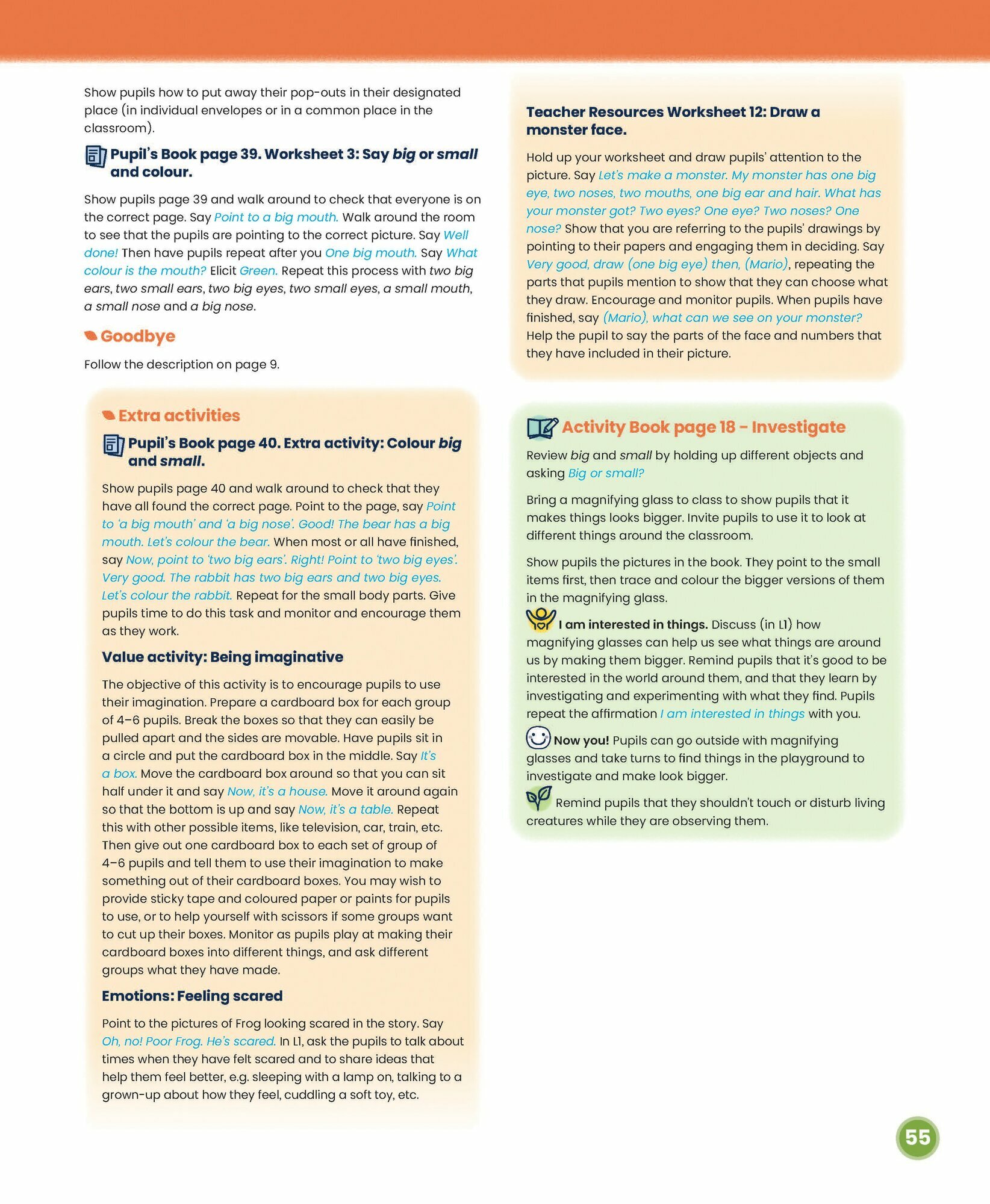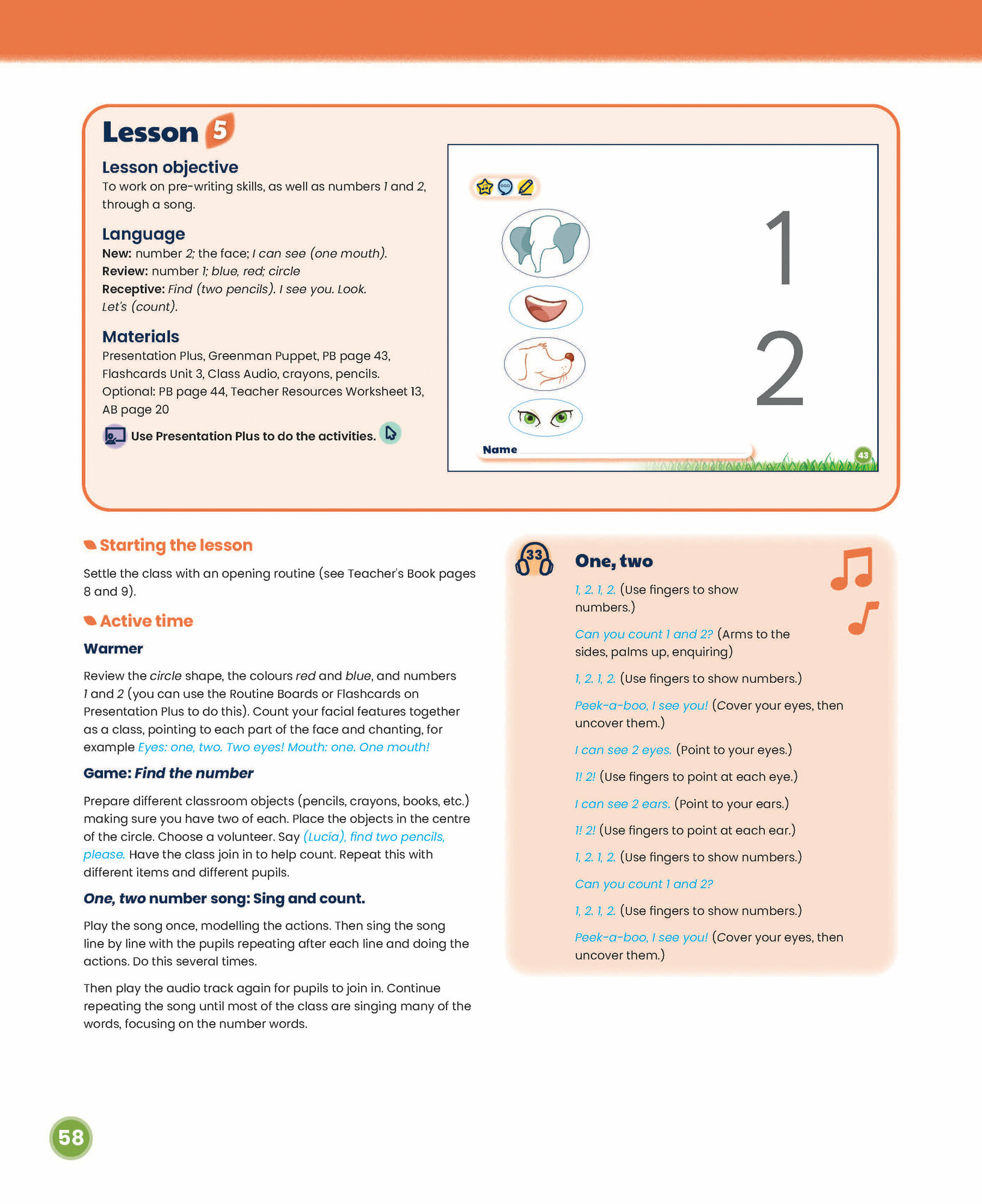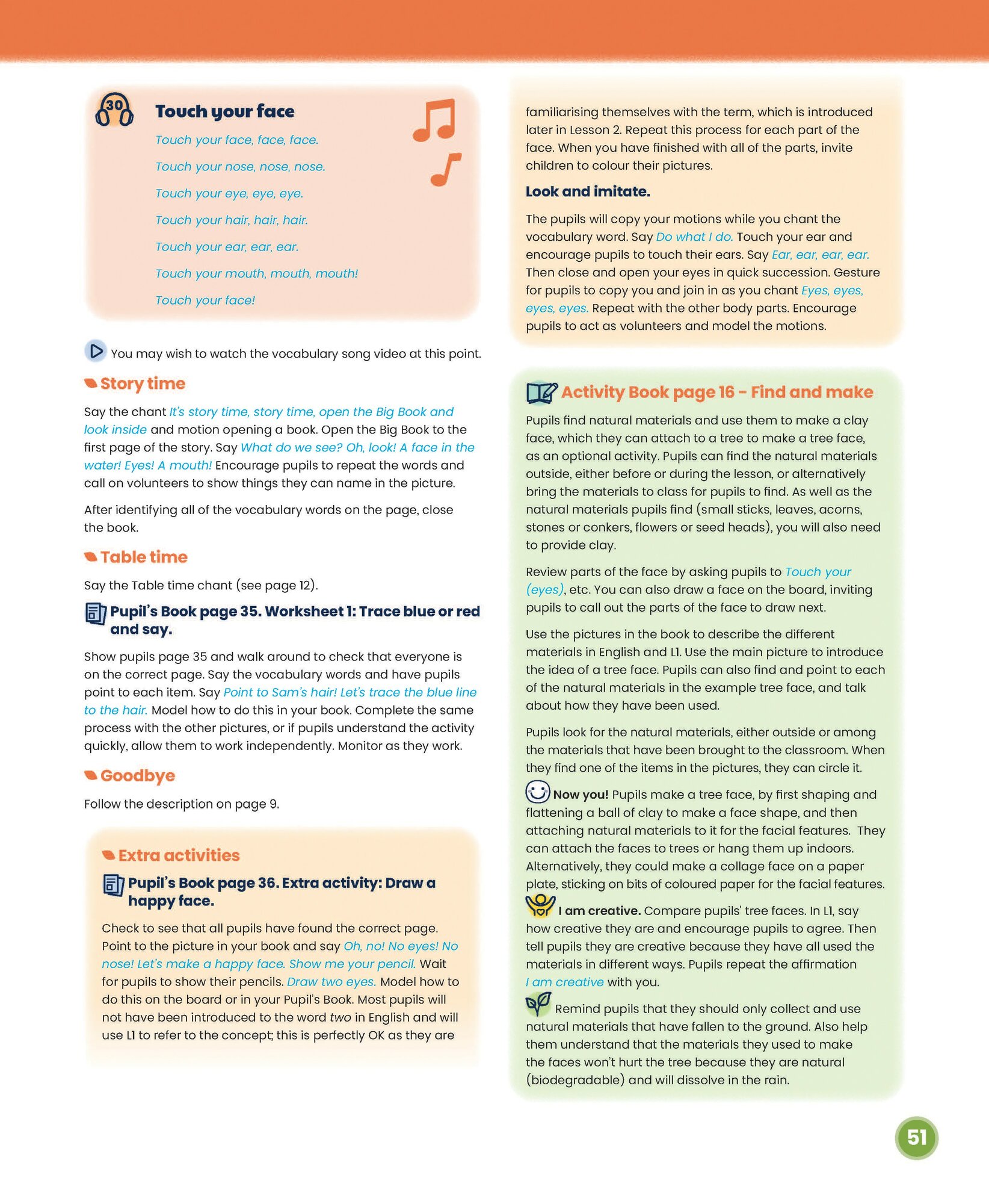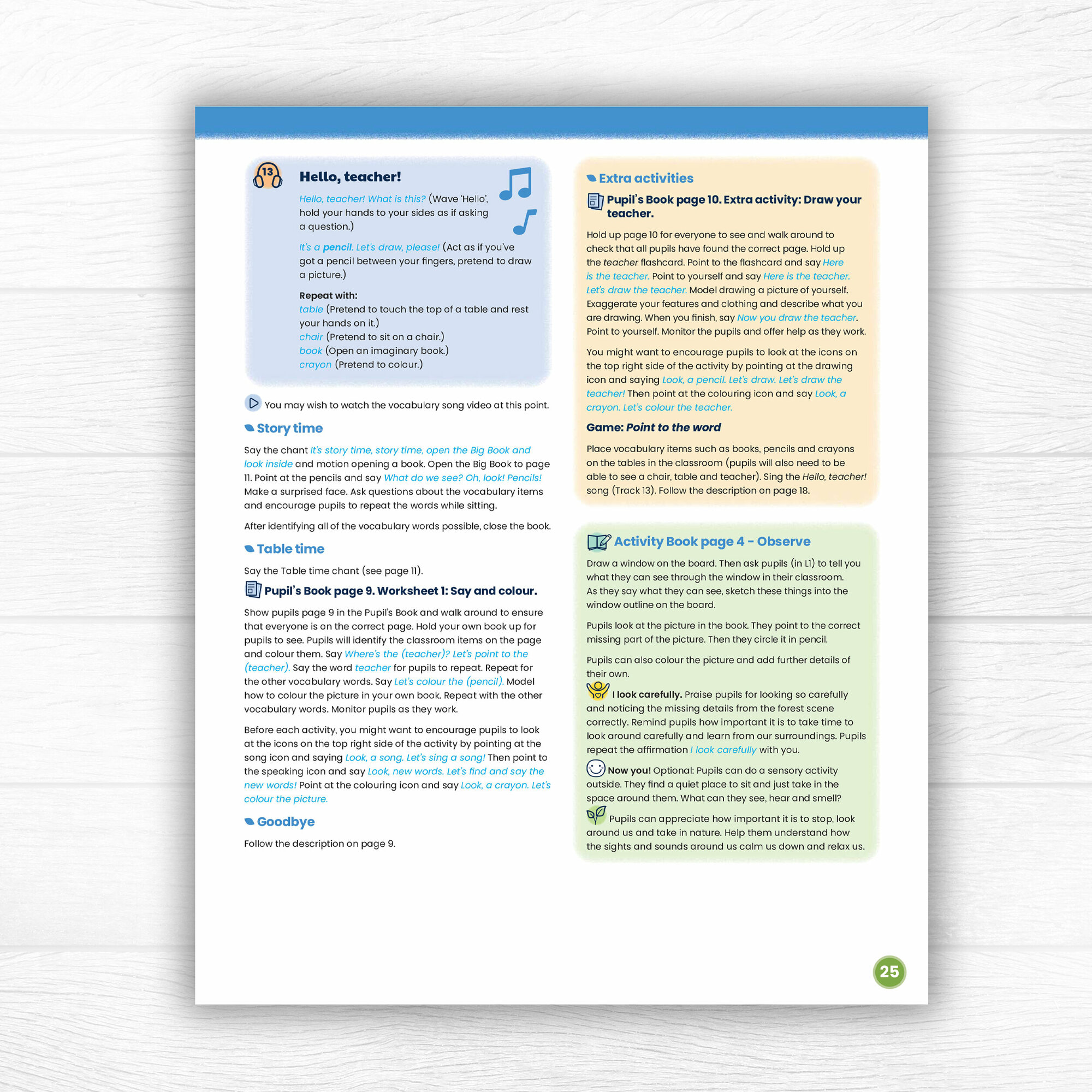 Книга для учителя содержит всю информацию, необходимую учителям для планирования и проведения уроков. К каждому уроку прилагается полное руководство, включая дополнительные задания и игры для продления занятий. Спиральный переплет делает книгу для учителя удобной в использовании при планировании и обучении.