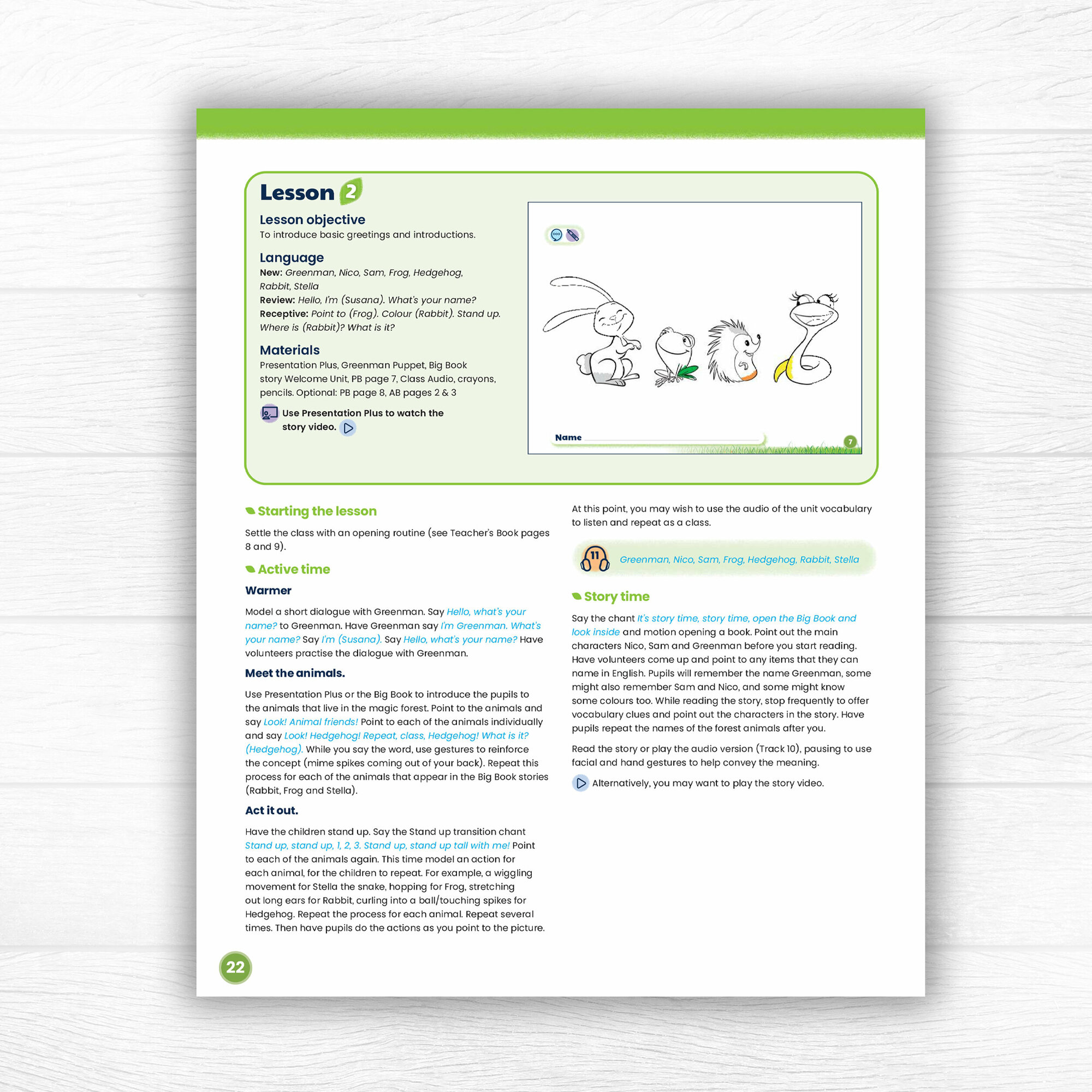 The Teacher's Book includes all the information to help teachers to plan and execute lessons. There is a full guide for each lesson including optional activities and games for extension. The spiral binding makes the Teacher's Book easy to use while planning and teaching. The Digital Pack contains access to the Front of Class software and digital resources teachers need to make lessons magical.