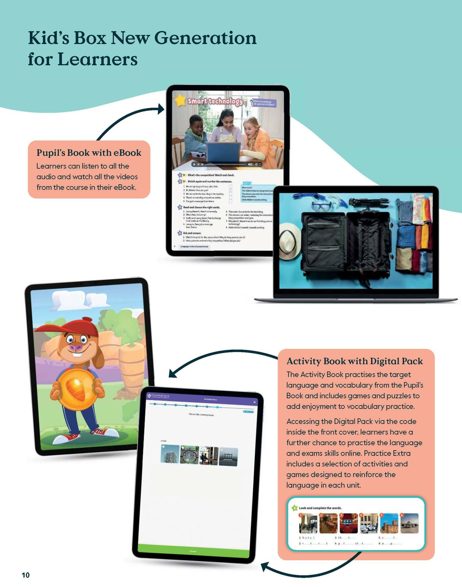 Цифровой пакет ресурсов включает в себя инструмент презентации в классе, ресурсы для учителя, генератор тестов, доступ к дополнительной практике и электронной версии учебника. С помощью инструмента для презентаций можно отобразить на экране учебник и рабочую тетрадь, все интерактивные занятия и множество аудиовизуальных материалов. В банке ресурсов находится широкий выбор загружаемых рабочих листов, а также практические тесты для тех, кто собирается сдавать pre-A1 Starters, A1 Movers and A2 Flyers. Новый генератор тестов предлагает редактируемые тесты на трех различных уровнях.
