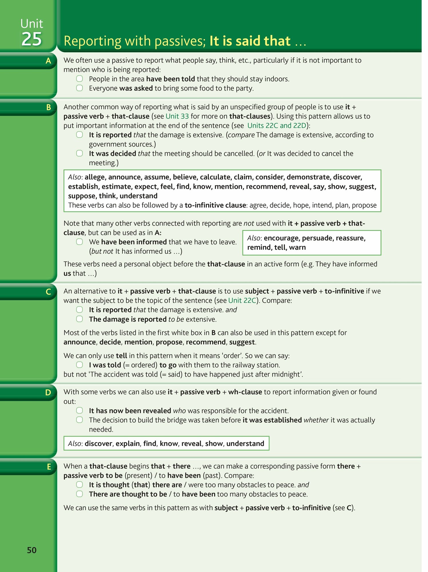 Справочник по грамматике и практическое пособие для изучающих английский язык на уровне Advanced (CEFR C1-C2). Идеально подходит для самостоятельного изучения, но также может использоваться для дополнительных занятий в классе. Это четвертое издание является высшим уровнем в серии, которую используют миллионы изучающих языки и преподавателей по всему миру. Он содержит 105 разделов, в том числе пять новых разделов по грамматике для академических целей. Также включены онлайн-ресурсы: 36-месячная подписка на версию электронной книги с аудио и ответами, а также более 200 быстрых онлайн-тестов для проверки понимания и получения отзывов по грамматическим вопросам, требующим дальнейшего изучения.
