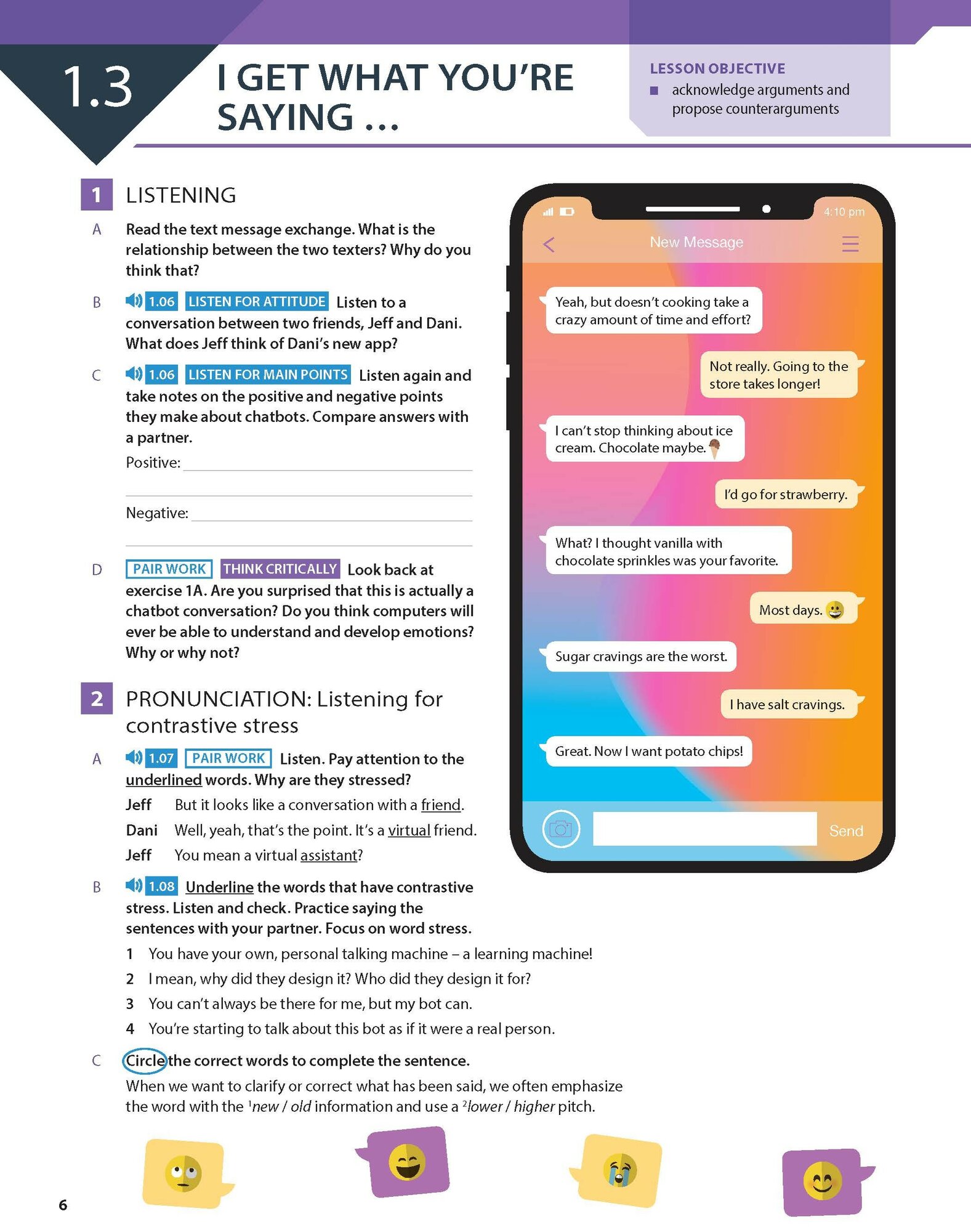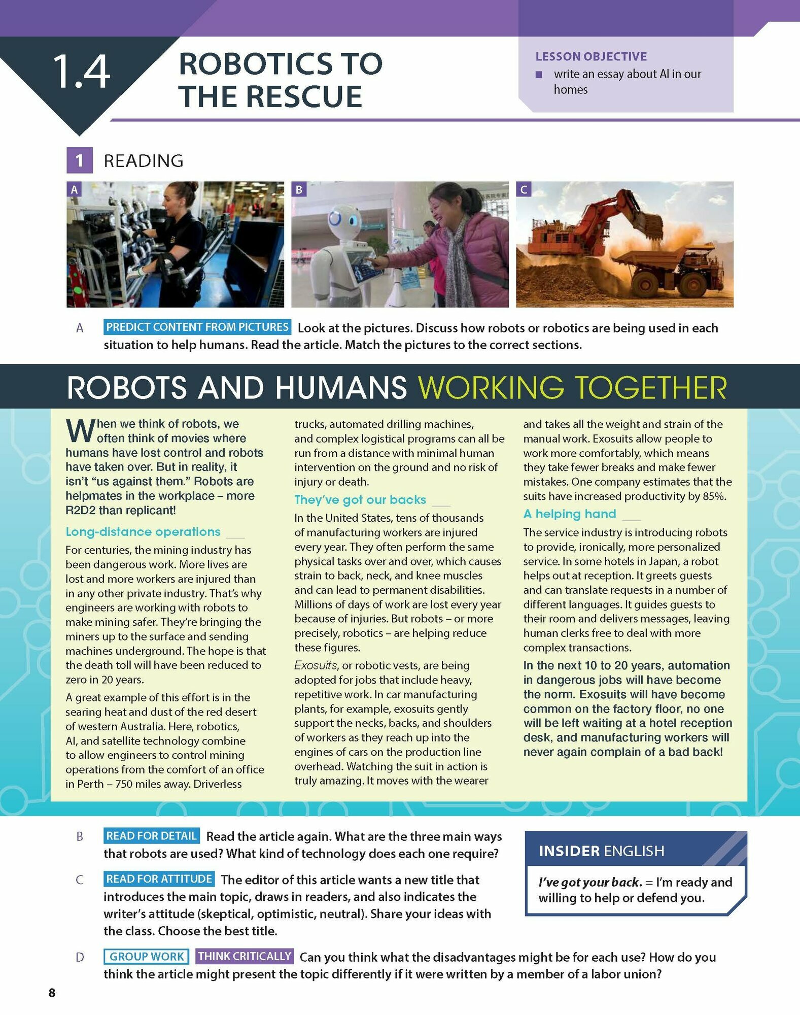 Опираясь на опыт экспертов по преподаванию языков и реальных студентов, учебник охватывает все навыки и фокусируется на наиболее эффективных способах добиться прогресса в изучении английского языка. В каждом из 12 разделов книги есть урок "Time to speak", на котором задачи по принятию решений и разрешению проблем позволяют успешно развивать речевые навыки.