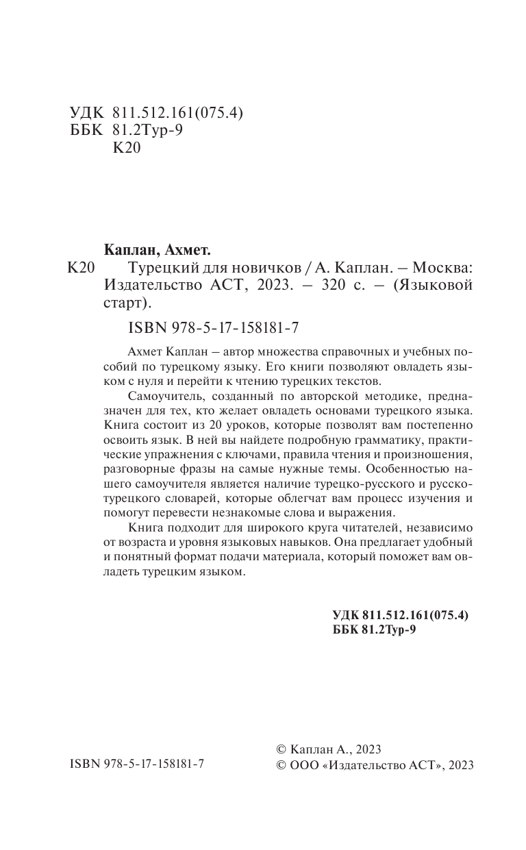 Книга: Турецкий для новичков (Ахмет Каплан); Издательство АСТ, 2023
