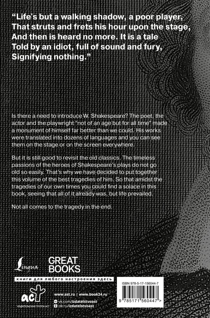 Распалась связующая вас с английским нить? Шекспир поможет вновь её соединить! Его "Трагедии" неиссякаемый источник наслаждения для любителя английской литературы.