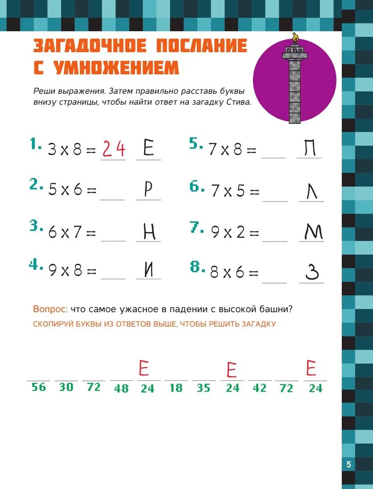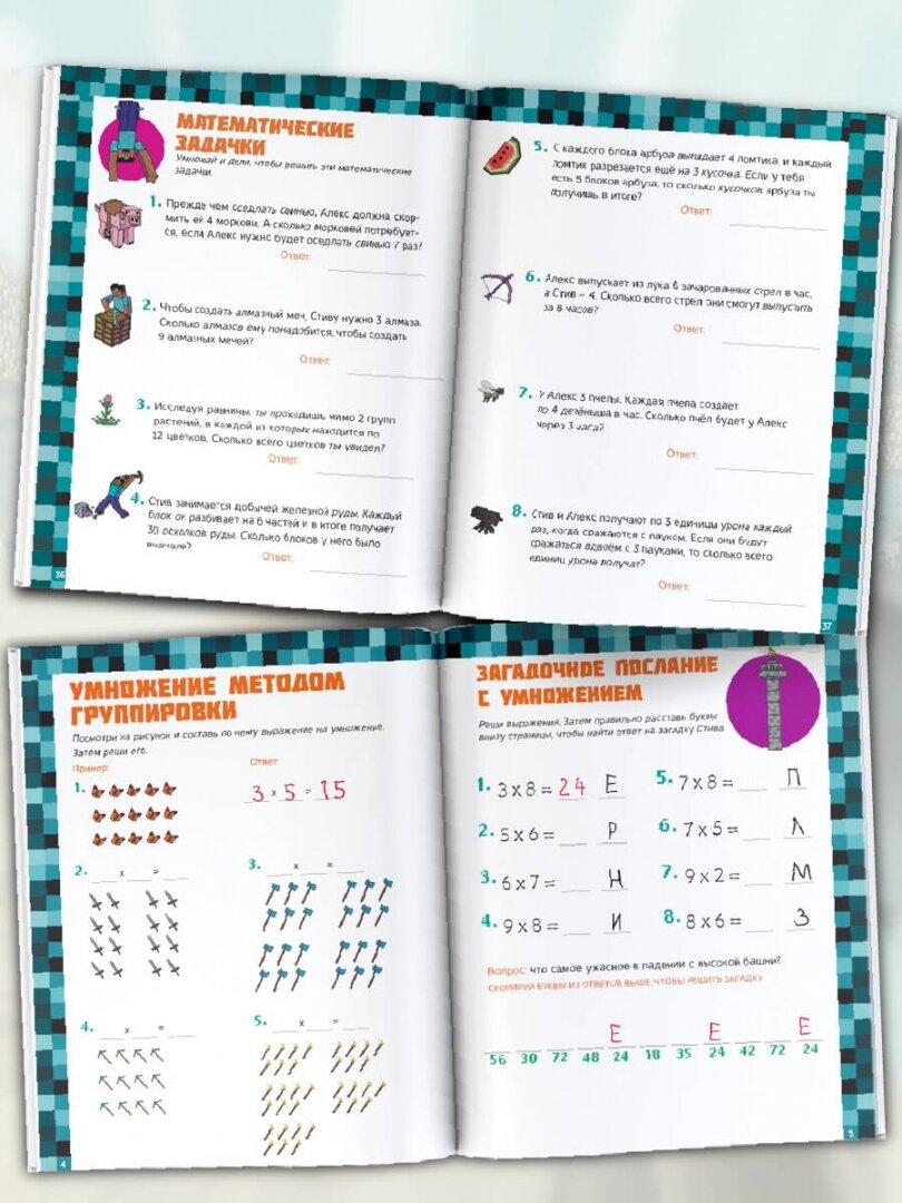 Эта книга - прекрасный подарок для скучающих майнкрафтеров! Огромное количество тематических игр и головоломок с участием любимых персонажей, таких как криперы, гасты, зомби и другие, подарят детям множество часов веселья, а также помогут прокачать математические способности, логику и воображение.