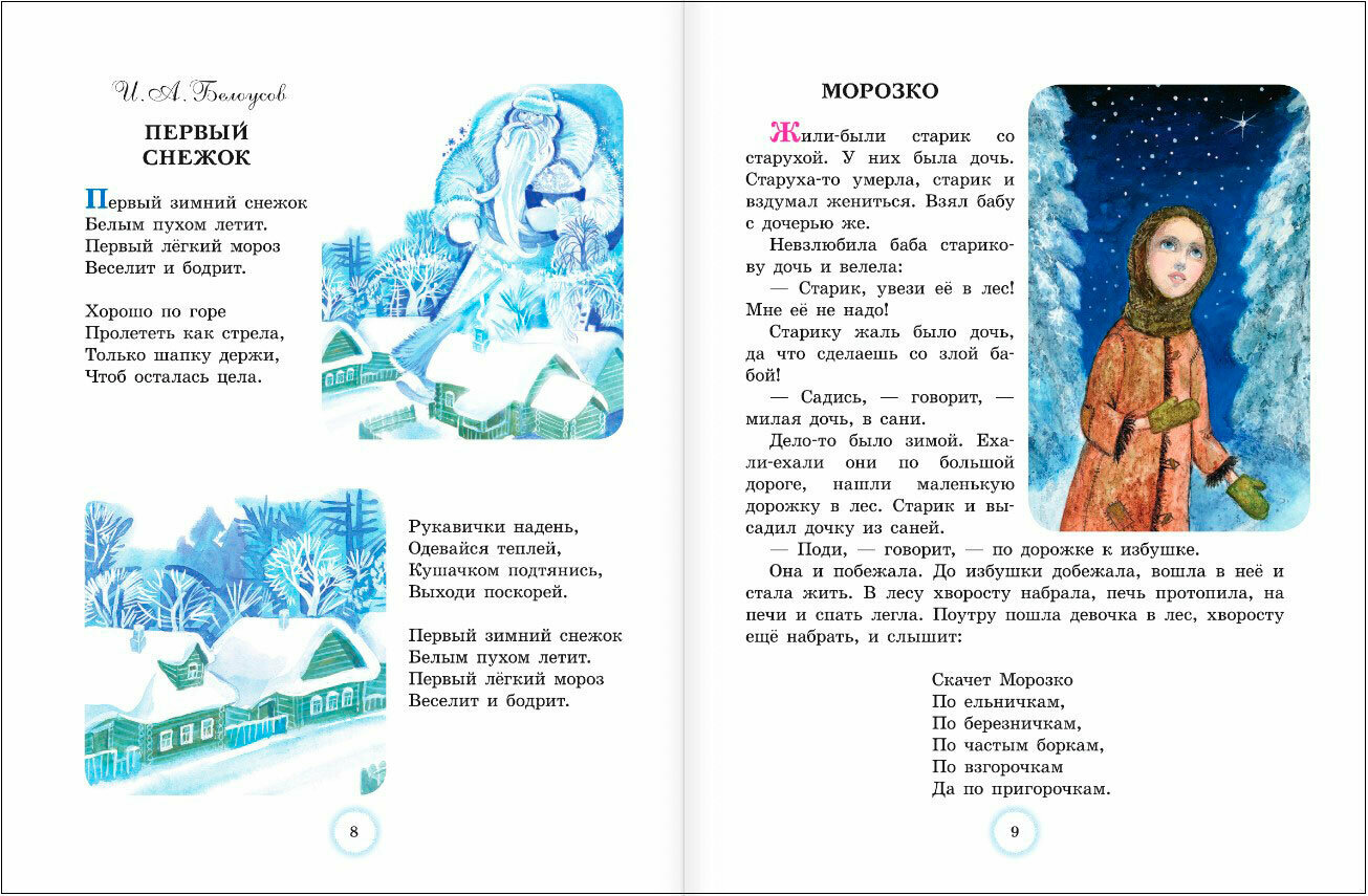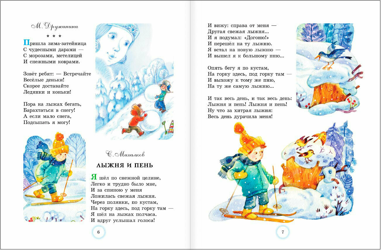 В сборник вошли самые лучшие стихи и сказки о волшебном празднике Новом годе, зиме, Дедушке Морозе, Снегурочке и новогодних чудесах. Произведения сборника написали такие признанные классики детской книги, как С. Маршак, С. Михалков, К. Чуковский, А. Барто, а также современные авторы – В. Степанов, М. Дружинина, Е. Григорьева и многие другие. Из книги ребята узнают, куда идёт снег, во что превращается снежный медведь и кто такая Злка. А ещё прочитают о том, как отмечают Новый год в Простоквашино, почему грустит Дед Мороз и что нарисовано на снежной странице.