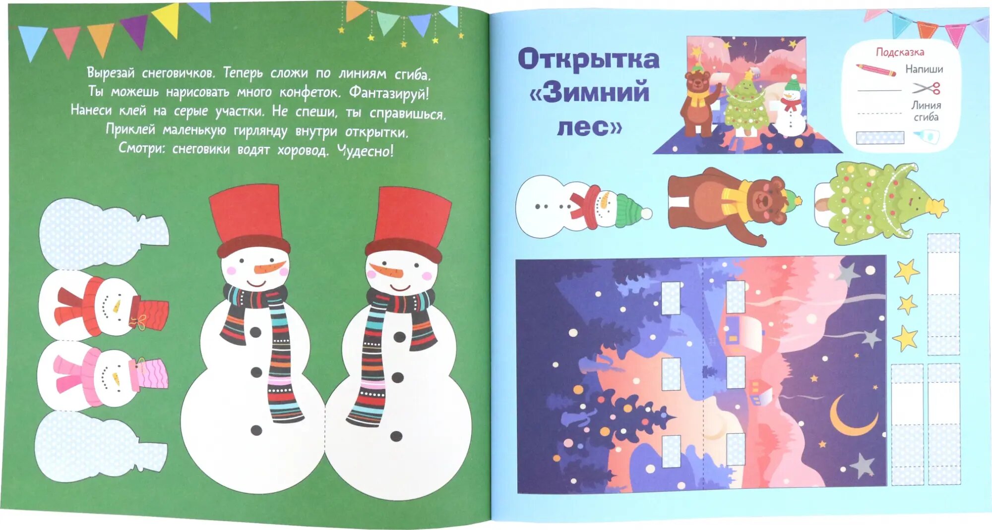 Новогодние поделки своими руками - незабываемое удовольствие для малышей в ожидании самого любимого зимнего праздника. Мальчишки и девчонки, которые ждут в гости Дедушку Мороза, смогут превратить в сказочную мастерскую свой дом - и удивить родных, близких и друзей необычными объёмными открытками. И всё, что для этого нужно, - наша книжка + клей, ножницы и цветная бумага. Активити-книга "3D новогодние открытки. Вырезай и клей. Сделай сам" - это множество идей для создания красивых и оригинальных поделок-поздравлений, которые станут прекрасным подарком к самому любимому зимнему празднику. Стоит лишь вырезать из цветной бумаги ёлочку, снежки, мешок с подарками и другие новогодние картинки, ровно согнуть детали по пунктиру и аккуратно склеить фигурки - и вот уже готово объёмное 3D-поздравление, которое малыш сделал сам! Стать маленькими волшебниками легко! Дети смогут самостоятельно создавать новогодние шедевры благодаря простым и понятным примерам из книги. Занимаясь таким интересным творчеством, малыши не только играют, они думают, фантазируют, изобретают, реализуют свои замыслы, тренируют пальчики, развивают пространственное мышление, воображение и художественный вкус. Удовольствие и положительные эмоции гарантированы!