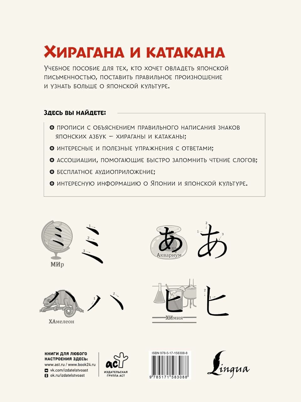 Хирагана и катакана: учебное пособие + бесплатное аудиоприложение (Анна Буландо); АСТ, Lingua, 2023