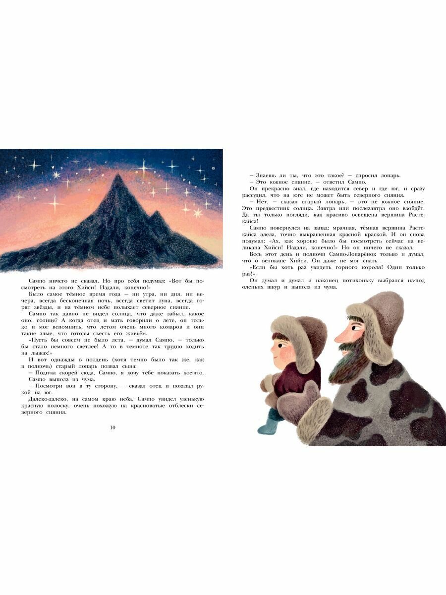 В книгу «Сампо-Лопарёнок» вошли три истории: «Сампо-Лопарёнок», «Зимняя сказка», «Как тролли на свой лад Рождество справляли». Далеко на Севере жили лопарь и лопарка. И был у них сын по имени Сампо. Он был очень отважный. Однажды Сампо-Лопарёнок захотел увидеть оленя с Золотыми рогами и отправился в царство горного короля. Никто оттуда ещё не возвращался…