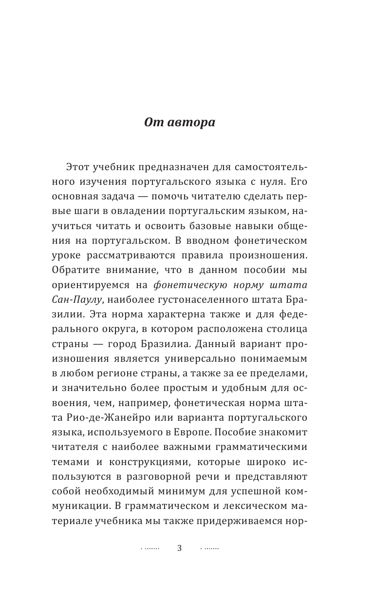 Пособие предназначено для широкого круга лиц, изучающих португальский язык, и в первую очередь для тех, кто решил овладеть бразильским вариантом португальского языка самостоятельно. Излагаемый материал соответствует уровню А1 и подойдет для начинающих обучение.