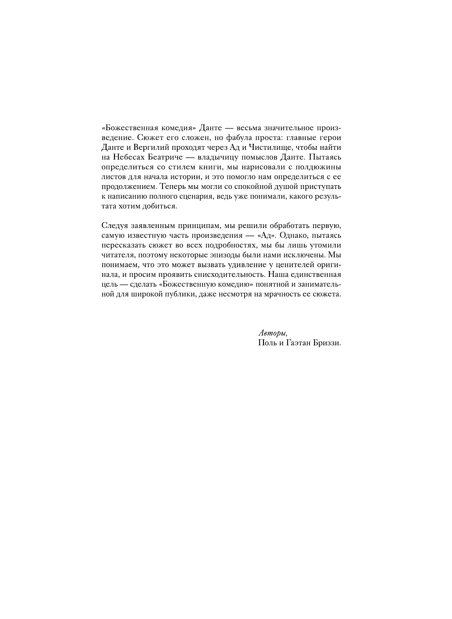 Графическая адаптация шедевра Данте от знаменитых художников и анимационных режиссеров Поля и Гаэтана Бриззи.