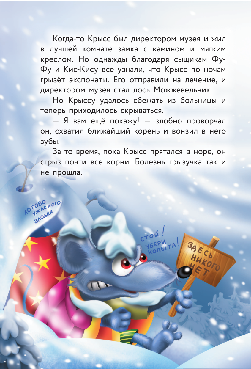 Всё началось с неожиданного появления забугорного гостя — Вольгеруха и нападения редкостных злодеев… Но детективы Фу-Фу и Кис-Кис не привыкли к простым делам! К тому же на носу Звероновый год, и необходимо срочно расследовать преступление. Иначе зимний праздник останется без нарядной ёлки, Зверя Мороза и Снежной Гурочки.