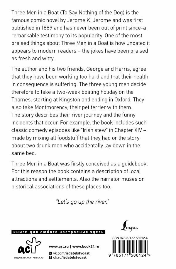 Three Men in a Boat (To say Nothing of the Dog) / Трое в лодке не считая собаки (Джером К. Джером); Издательство АСТ, 1889