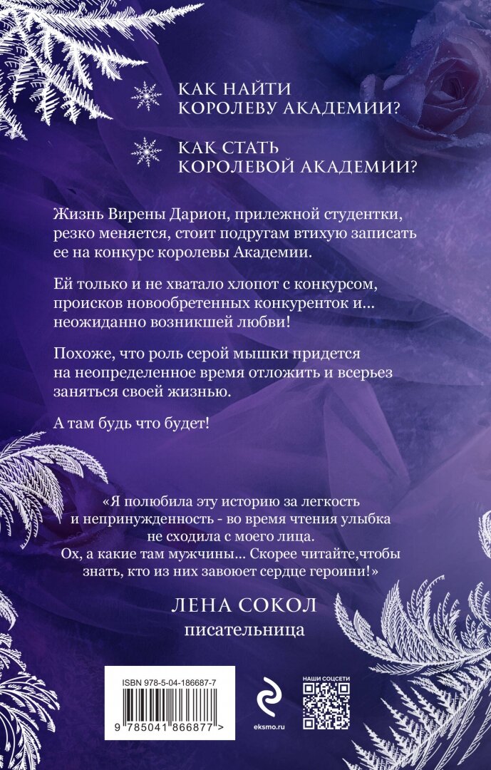 Может ли ничем не примечательная студентка Магической Академии рассчитывать на спокойную жизнь? Рассчитывать может, однако на деле Вирена Дарион оказалась в сумасшедшей круговерти событий. И все из-за того, что подружки решили причинить добро и записали ее на конкурс королев академии, достойных стать спутницами первому красавцу, по которому Вирена вздыхала с первого курса. А тут еще несданная курсовая, отработки у строгого и таинственного магистра, происки завистниц и... любовь. Вот с ней-то разобраться сложнее всего.