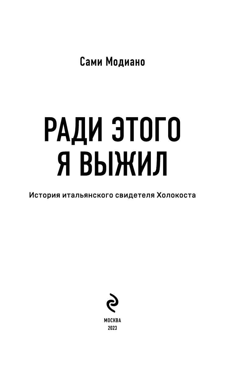 Ради этого я выжил. История итальянского свидетеля Холокоста (Сами Модиано); Эксмо, Редакция 1, 2023