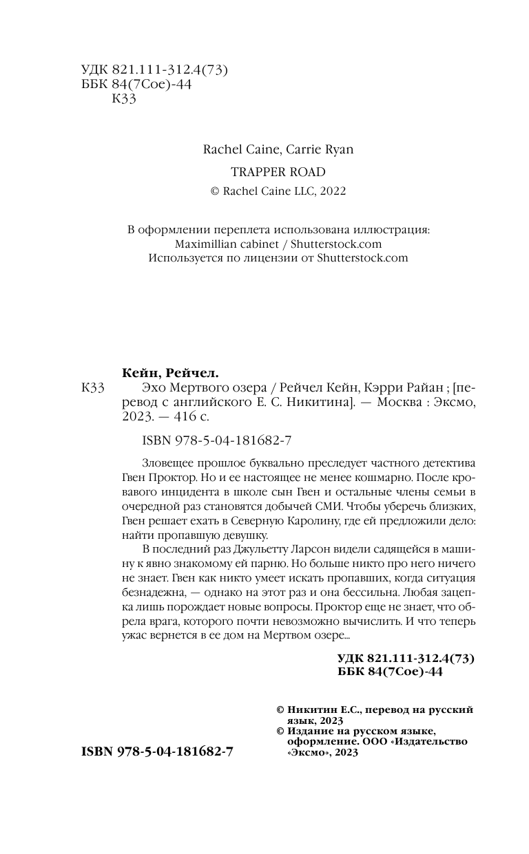 Книга: Эхо Мертвого озера (Рэйчел Кейн, Райан Кэрри); ООО "Издательство "Эксмо", 2023