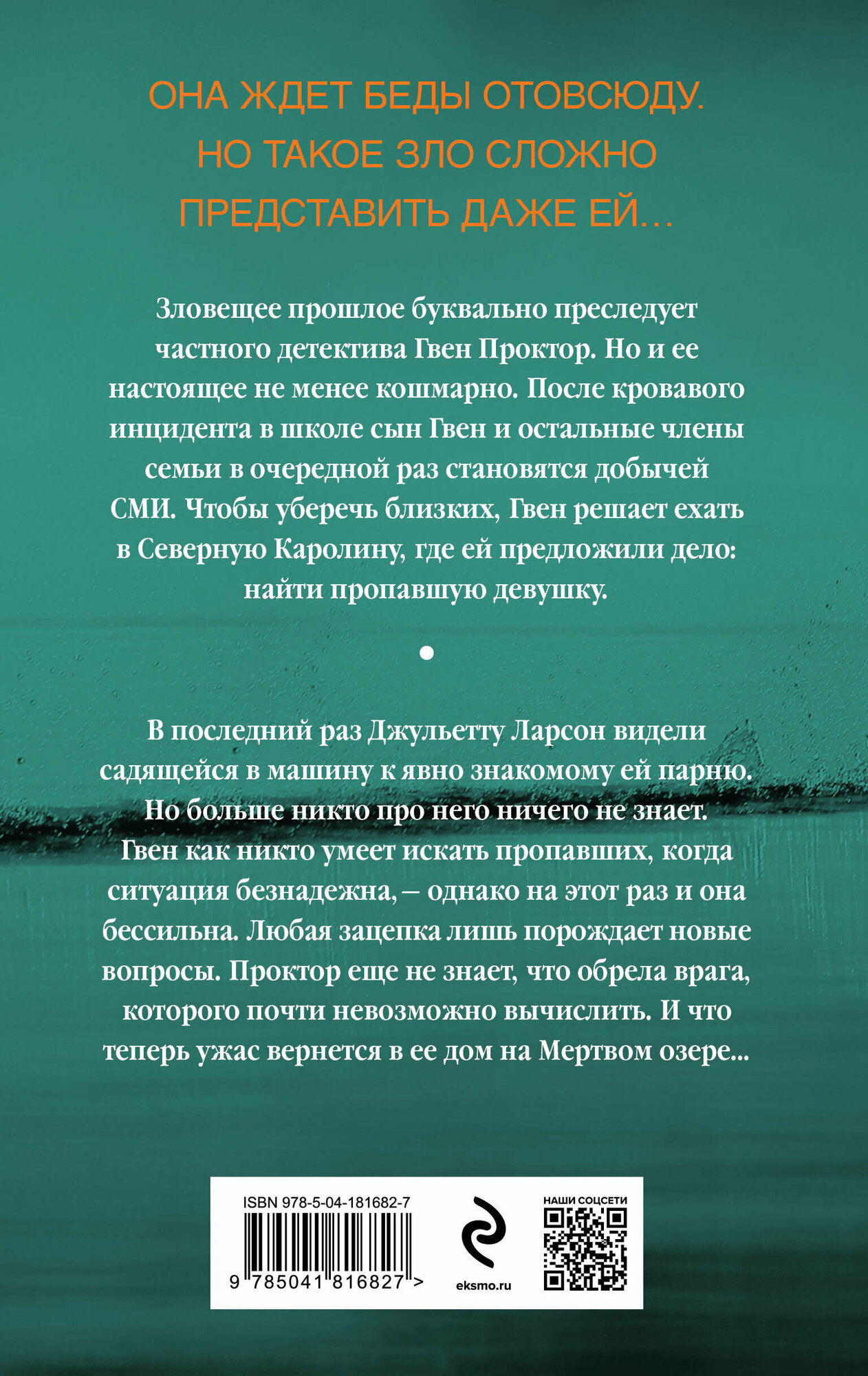 В последний раз Джульетту Ларсон видели садящейся в машину к явно знакомому ей парню. Но больше никто про него ничего не знает. Гвен как никто умеет искать пропавших, когда ситуация безнадежна, — однако на этот раз и она бессильна. Любая зацепка лишь порождает новые вопросы. Проктор еще не знает, что обрела врага, которого почти невозможно вычислить. И что теперь ужас вернется в ее дом на Мертвом озере…
