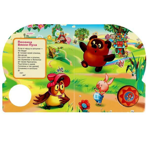 Ребёнок с удовольствием будет листать плотные картонные страницы, рассматривать красочные картинки, нажимать на кнопку и слушать весёлые песенки, подпевая героям любимых мультфильмов или петь самостоятельно в режиме «караоке». Малыш легко освоит включение звука: при нажатии на кнопку включится первая песенка, при втором нажатии выключится, в 3 - ий раз - заиграет следующая и т.д. Благодаря компактному формату книгу удобно брать с собой в поездки.