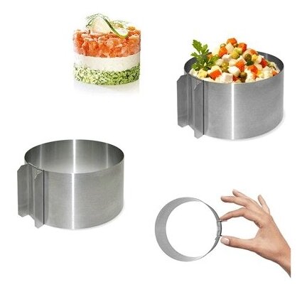 Кулинарные формы удобный и незаменимый аксессуар для подготовки праздничного стола.Эти специальные полые формы используются для оформления блюд, помогут сервировать закуски и десерты, пригодятся для порционного тушения, сборки бутербродов и канапе, а также с их помощью можно вырезать фигурки из теста.Применение форм сможет удивить гостей эффектными шедеврами кулинарного искусства, вы сможете красиво подать на стол практически любые закуски и блюда, которым необходимо придать идеальную строгость форм.Форма имеет регулируемый размер (диаметр от 6 до 10 см) и высоту 5см.Для уменьшения диаметра формы необходимо развести обе части ручки-держателя в разные стороны и зафиксировать форму в нужном размере с помощью ползунка-стоппера.Изготовлено из коррозионностойкой (нержавеющей) стали.После применения рекомендуется промыть губкой с использованием жидких моющих средств.Хранить в сухом помещении.Можно мыть в посудомоечной машине, Кулинарные формы удобный и незаменимый аксессуар для подготовки праздничного стола.Эти специальные полые формы используются для оформления блюд, помогут сервировать закуски и десерты, пригодятся для порционного тушения, сборки бутербродов и канапе, а также с их помощью можно вырезать фигурки из теста.Применение форм сможет удивить гостей эффектными шедеврами кулинарного искусства, вы сможете красиво подать на стол практически любые закуски и блюда, которым необходимо придать идеальную строгость форм.Форма имеет регулируемый размер (диаметр от 6 до 10 см) и высоту 5см.Для уменьшения диаметра формы необходимо развести обе части ручки-держателя в разные стороны и зафиксировать форму в нужном размере с помощью ползунка-стоппера.Изготовлено из коррозионностойкой (нержавеющей) стали.После применения рекомендуется промыть губкой с использованием жидких моющих средств.Хранить в сухом помещении.Можно мыть в посудомоечной машине.