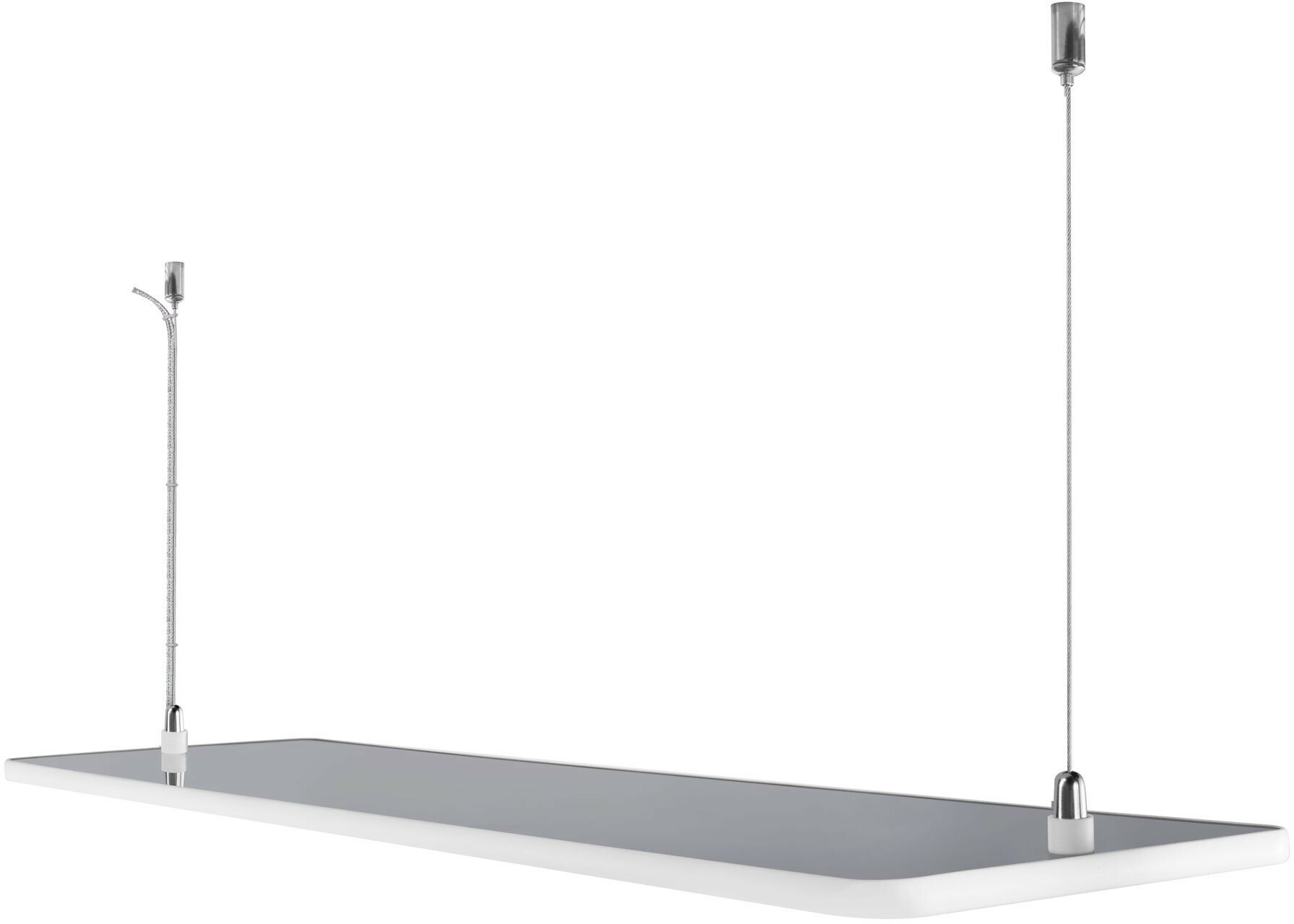 Повышенная степень пылевлагозащиты IP54 допускает применение обогревателей даже во влажных помещениях (ванные комнаты, бани, бассейны). Подвес на тонких незаметных тросах в комплекте.