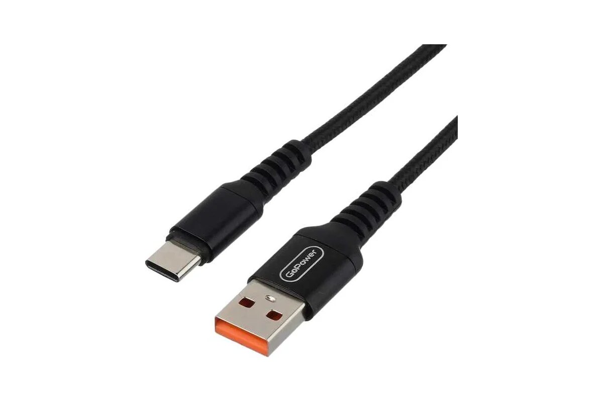 Кабель интерфейсный GoPower 00-00022791 USB (m)-Type-C (m) 1.0м 2.4A нейлон черный (1/200/800) GP02T