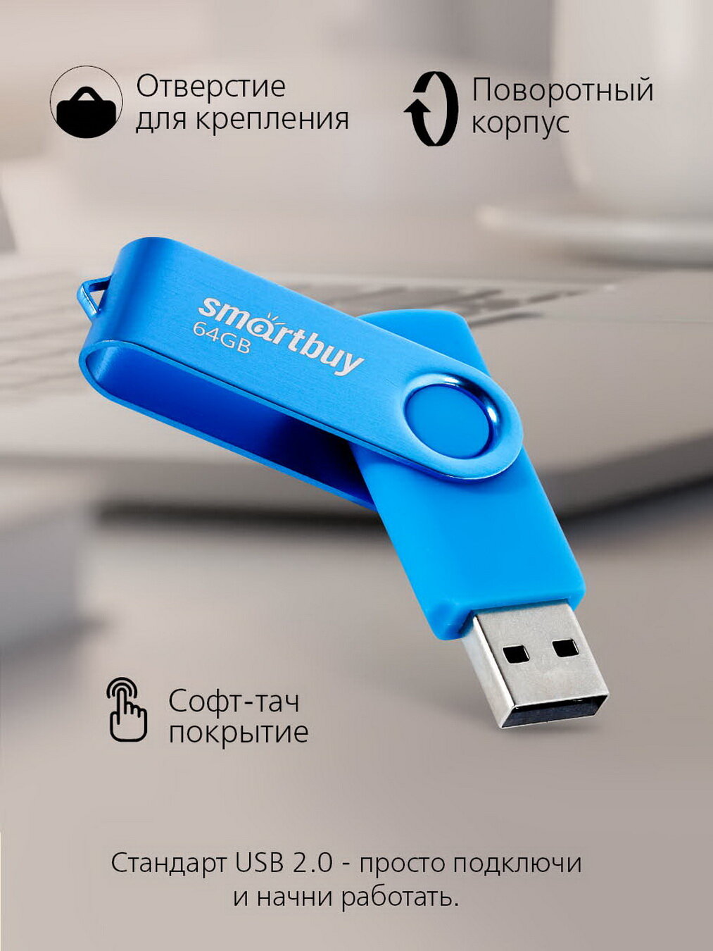 Накопитель USB 2.0 64GB SmartBuy Twist синий SB064GB2TWB