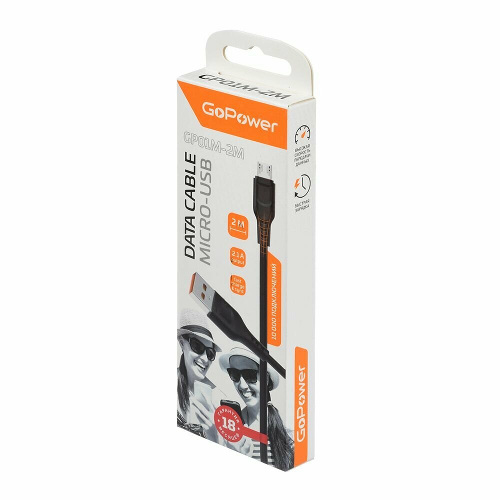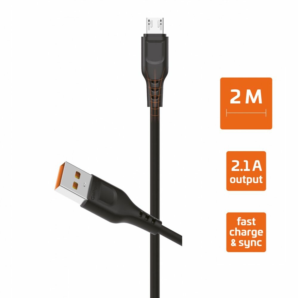 Кабель интерфейсный GoPower 00-00022773 USB (m)-microUSB (m) 2.0м 2.4A черный (1/200/800) GP01M-2M