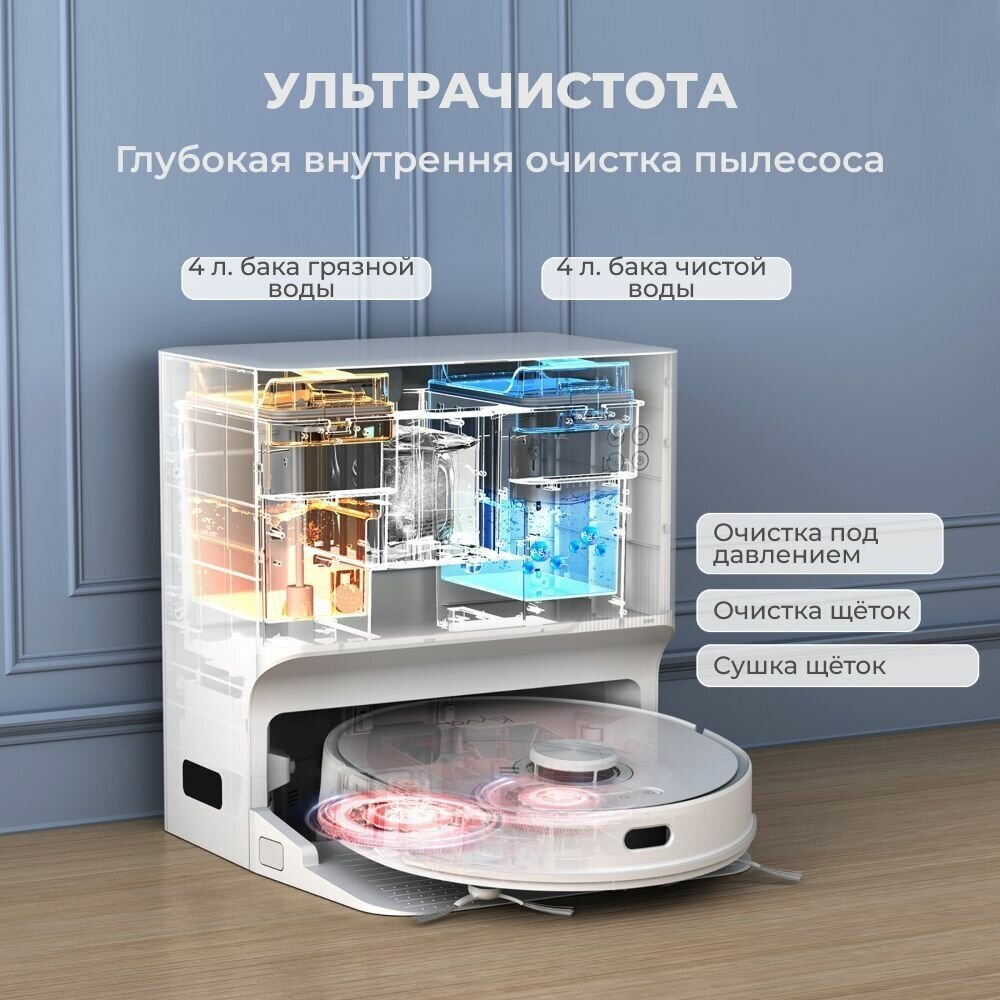 | Функциональные особенности базы | Автоматическая мойка швабры, Автоматическая сушка швабры, Самоочистка пылесборника пылесоса |