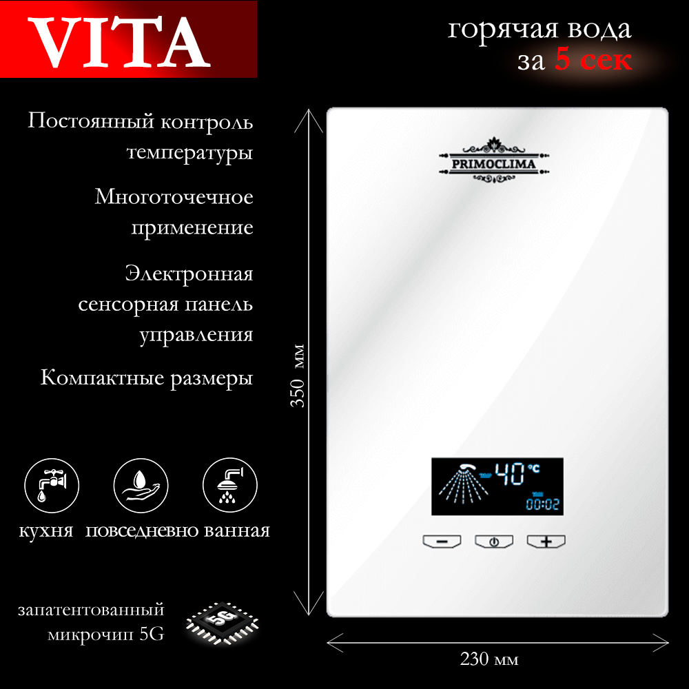 Электрический проточный нагреватель PRIMOCLIMA VITA 8.5 кВт белый (PC VITA 8.5 (W))
