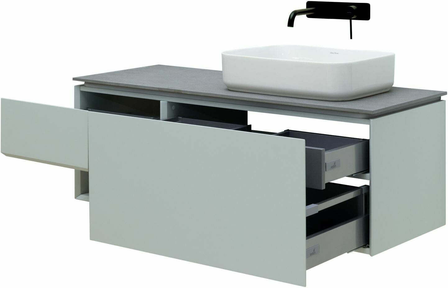 Коллекция мебели Infinity - это разнообразие интерьерных решений и возможностей для дизайна. Вариант отделки фасада: матовое покрытие. Тумба оснащена LED-подсветкой столешницы. Автоматическая сборка с помощью пневматического пресса Homag (Germany). 100% эмаль. 7 слоев эмали, нанесенных роботом, тумбы окрашены. Фурнитура высокого класса Hettich Inno Tech ATIRA (Germany). Выдвижные ящики с металлическими боковыми стенками в цвете серый металлик. Плавное закрывание ящиков, полное выдвижение, прочное дно (толщина 16 мм), нагрузка до 30 кг. Надежные подвески Hafele (Germany) с возможностью регулировки по высоте, нагрузка до 130 кг. Тумбы оснащены специальной пластиковой рамой, которая надежно защищает вырез под сифон,служит органайзером и позволяет закрепить дополнительный набор контейнеров для хранения.